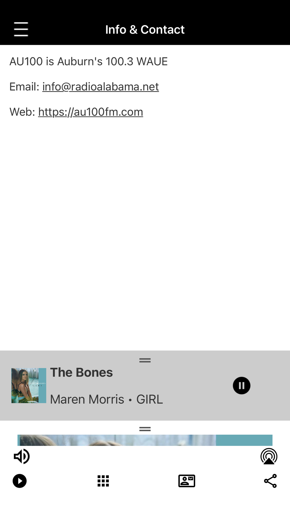 AU100 is Auburn\'s 100.3 WAUE. In addition to our app and online stream at au100fm.com, you can hear us live on 100.3 FM. We blanket the Auburn-Opelika area and are part of the RadioAlabama family, online at RadioAlabama.net.
