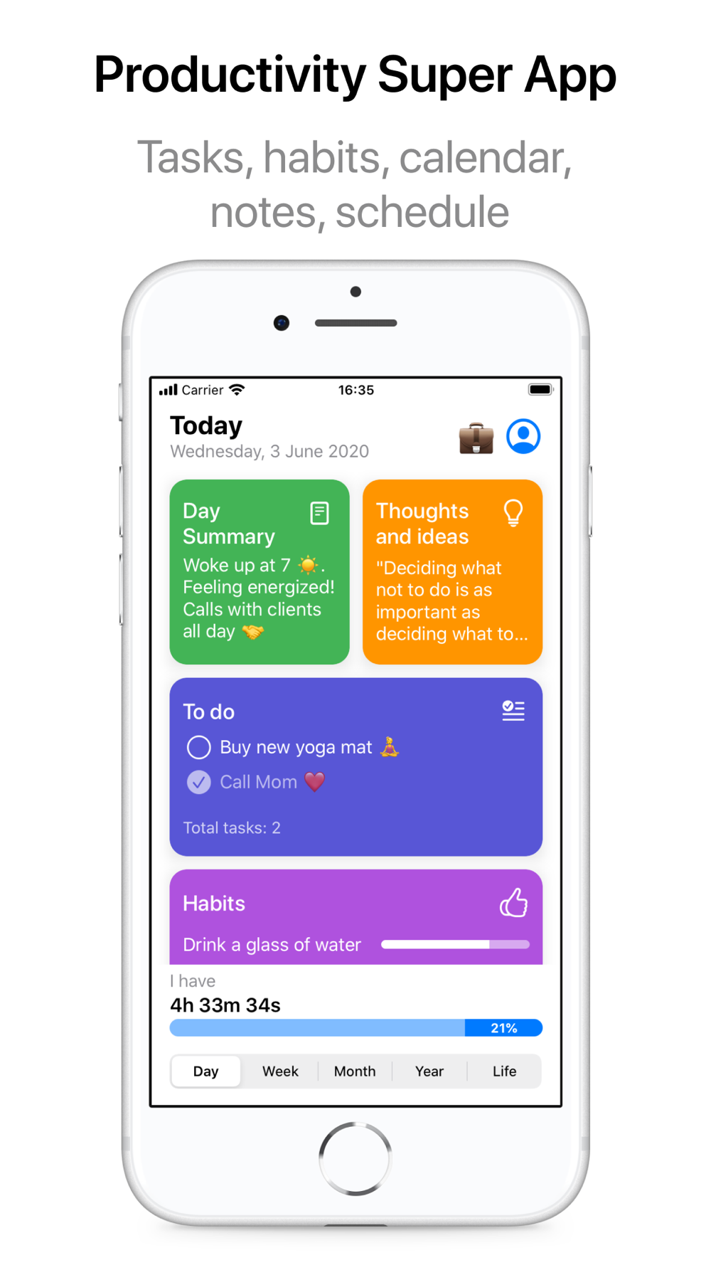 ■ Schedule: import events from Apple Calendar, create notifications, plan your day down to a minute