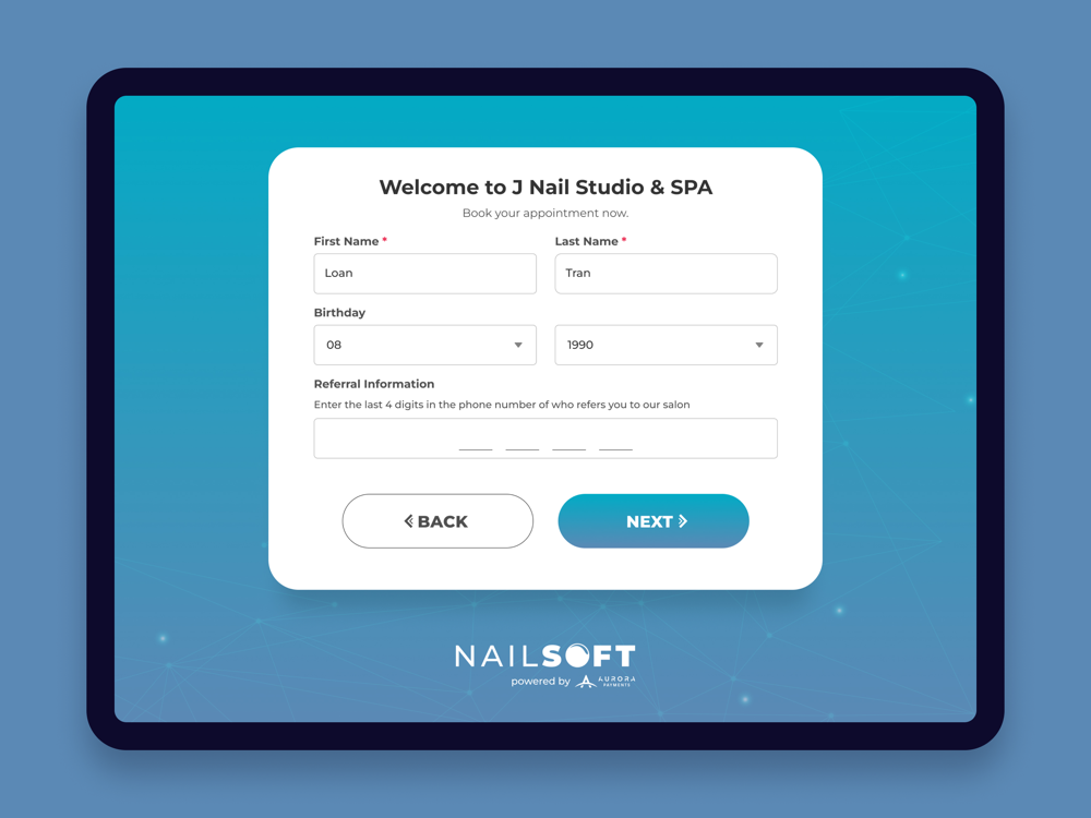 Seamlessly checks-in clients and customizes their needs in just a few clicks. Until clients download the integrated HarmonyPay app, they can sign-in here when they enter a salon. The client can pick the time, type of service, and even the stylist they want. The app will automatically alert the merchant of the client's wishes and maximize both parties' time.