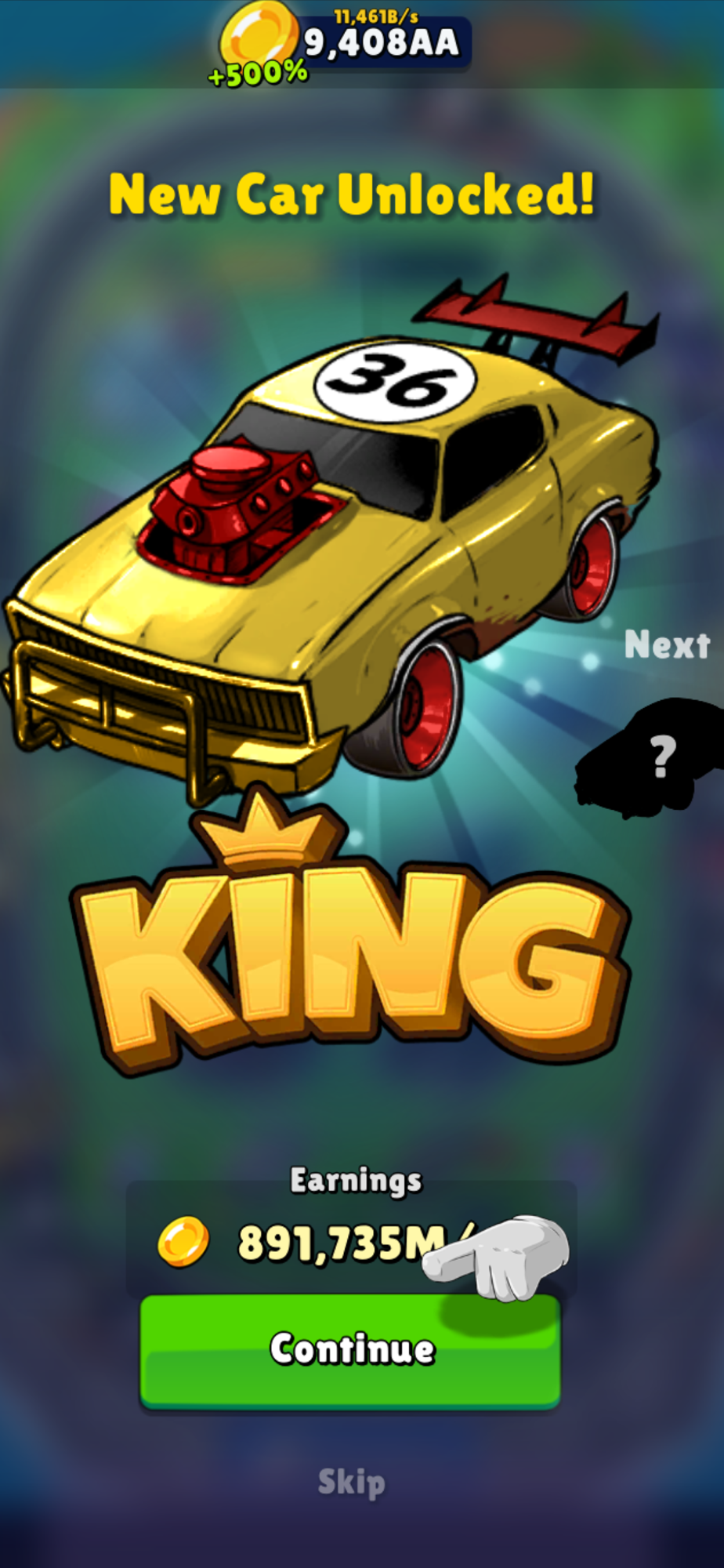 The gameplay is very intuitive: merge the same cars together into advanced one and earn money for each finished circuit. Improve your cars, gain new slots and expand your collection to get more money.