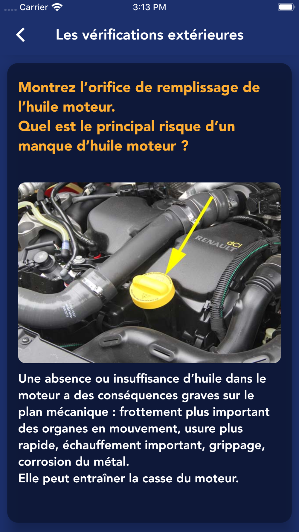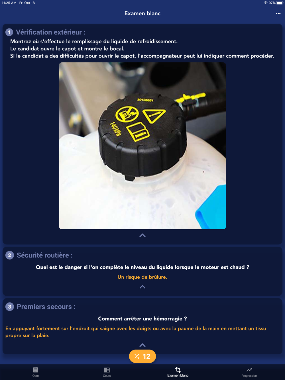 Grâce à l'application Verifs, il est très simple de réviser les vérifications intérieurs et extérieurs ainsi que les gestes de premiers secours.