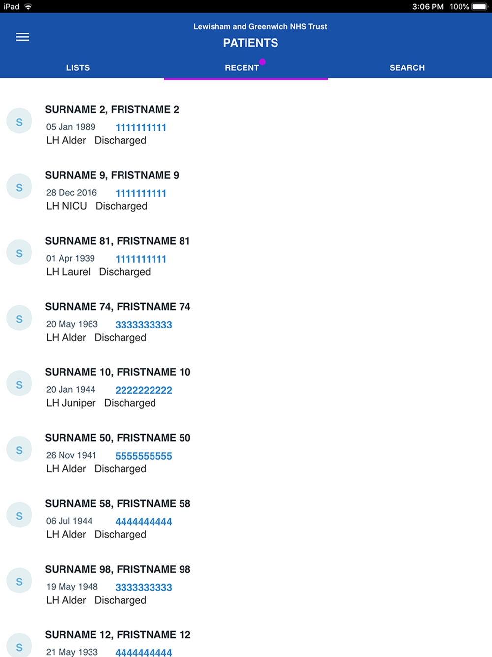 Accessible within mConch Trust and for authorised Trust users only. Instant access through your mobile device to patient demographic, location information, and pathology and radiology results.