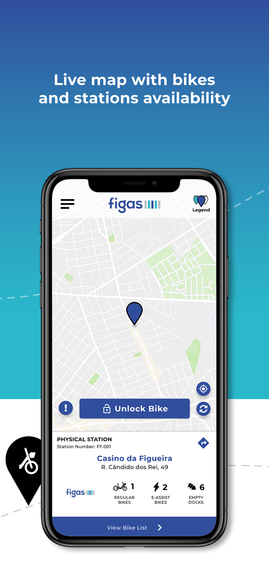 The official FIGAS - Figueira da Foz is your ultimate tool to bike around Figueira da Foz. Use the App to check bike availability at each station as well as your profile and previous routes. You can even unlock a bike! Simple to use with cutting-edge features, the official App is all you need to get the best out of FIGAS - Figueira da Foz : - Access a live map to find the closest station or take a peek at available bikes. You can also keep track of your favorite stations. - Purchase your Pass and checkout a bike all from the app. - Don’t have your pass? No problem. Simply use the app to unlock the bike virtually. - Start the timer and get an alert before you need to dock. - Notice a flat tire or other issue? Report any concerns from the app. - Keep track of your previous rides, total miles ridden, and more with the app. Enjoy the ride!