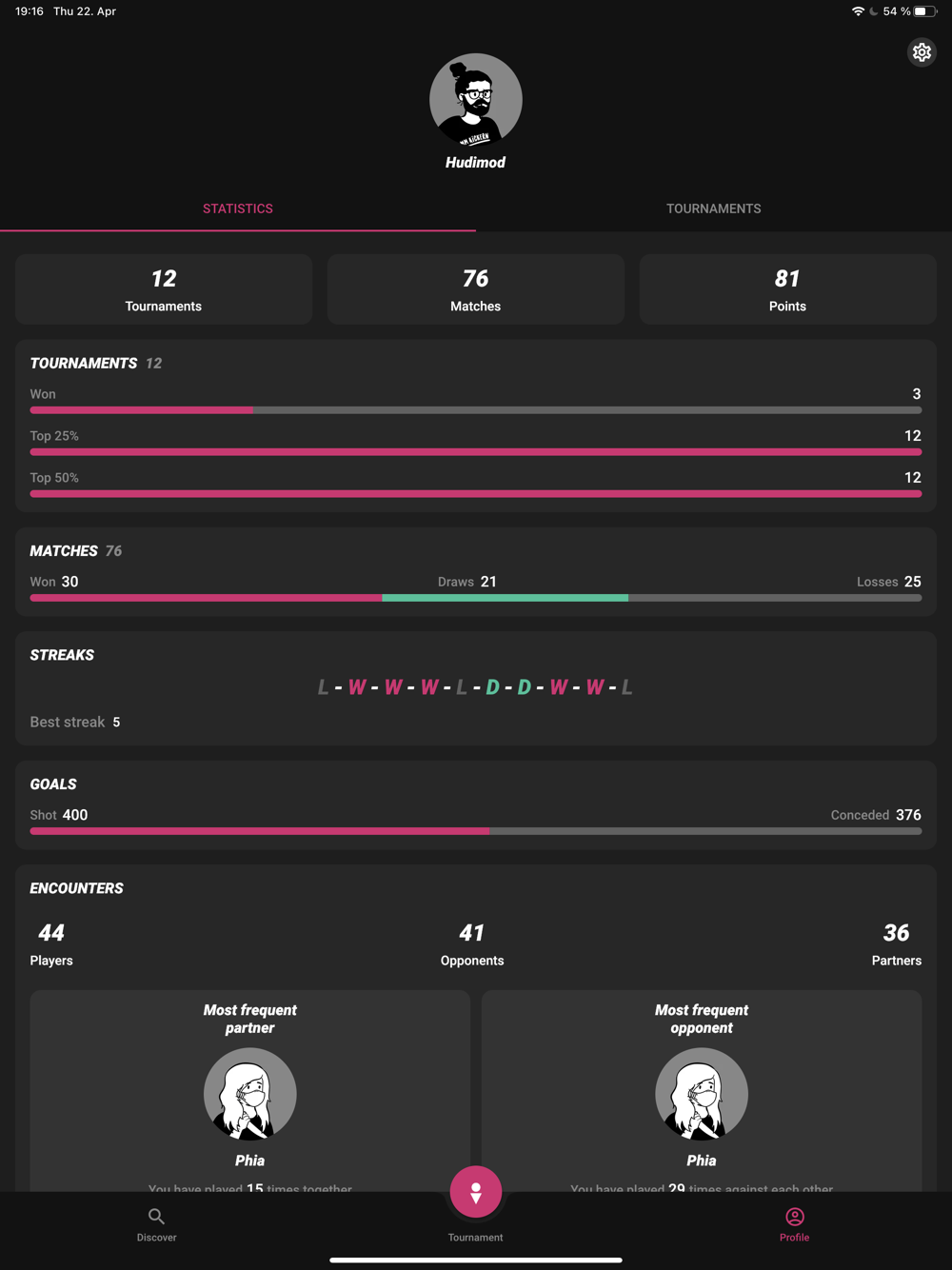 Find locations with foosball tables with LET'S FOOS and play tournaments with your friends at any time. You can save your results and work on your individual game statistics for a long time.