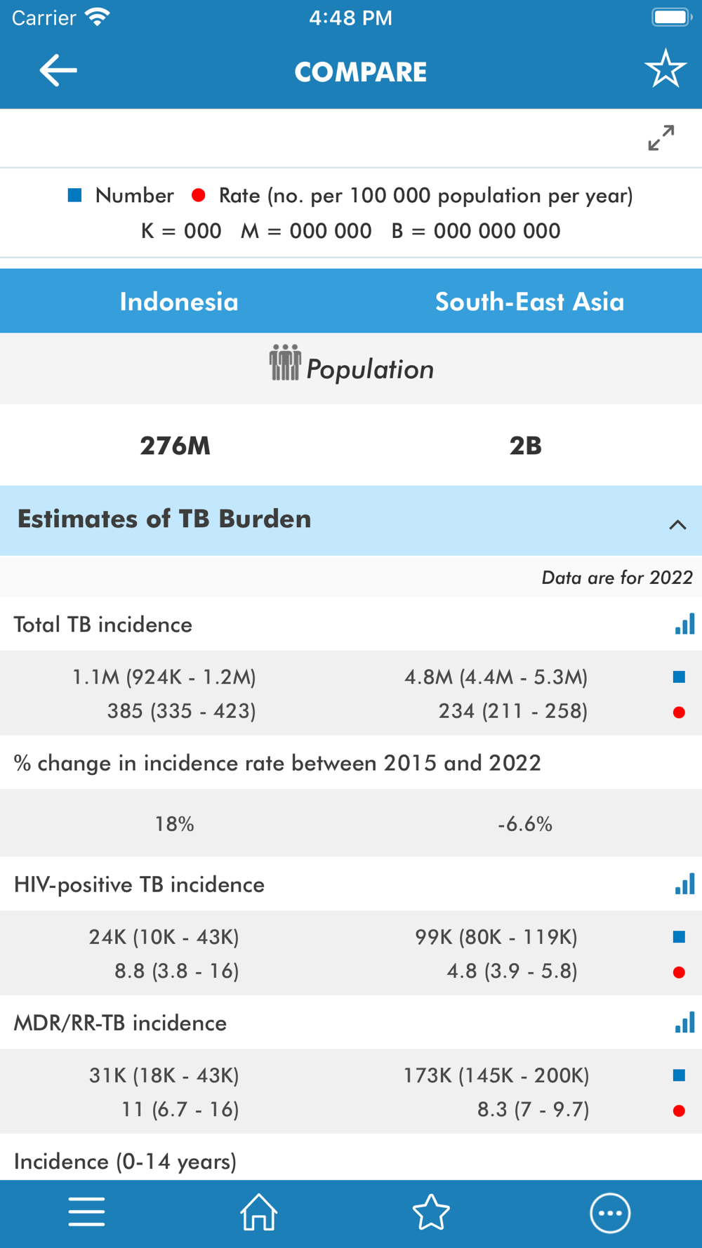 Latest global tuberculosis data in your pocket! Discover current statistics and trends, compare countries and regions, and find the data you need at your fingertips.