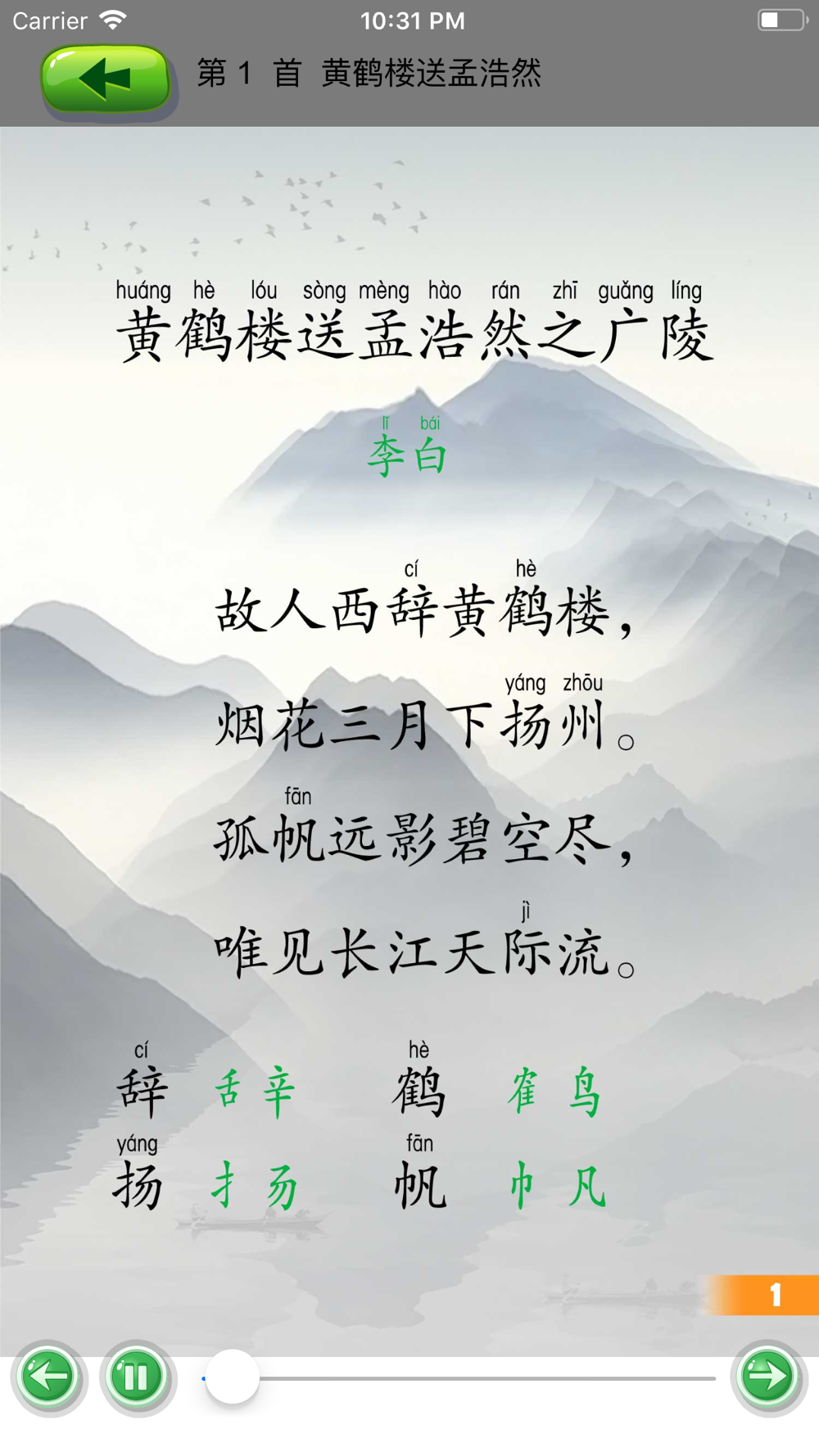 第1首黄鹤楼送孟浩然之广陵(李白);