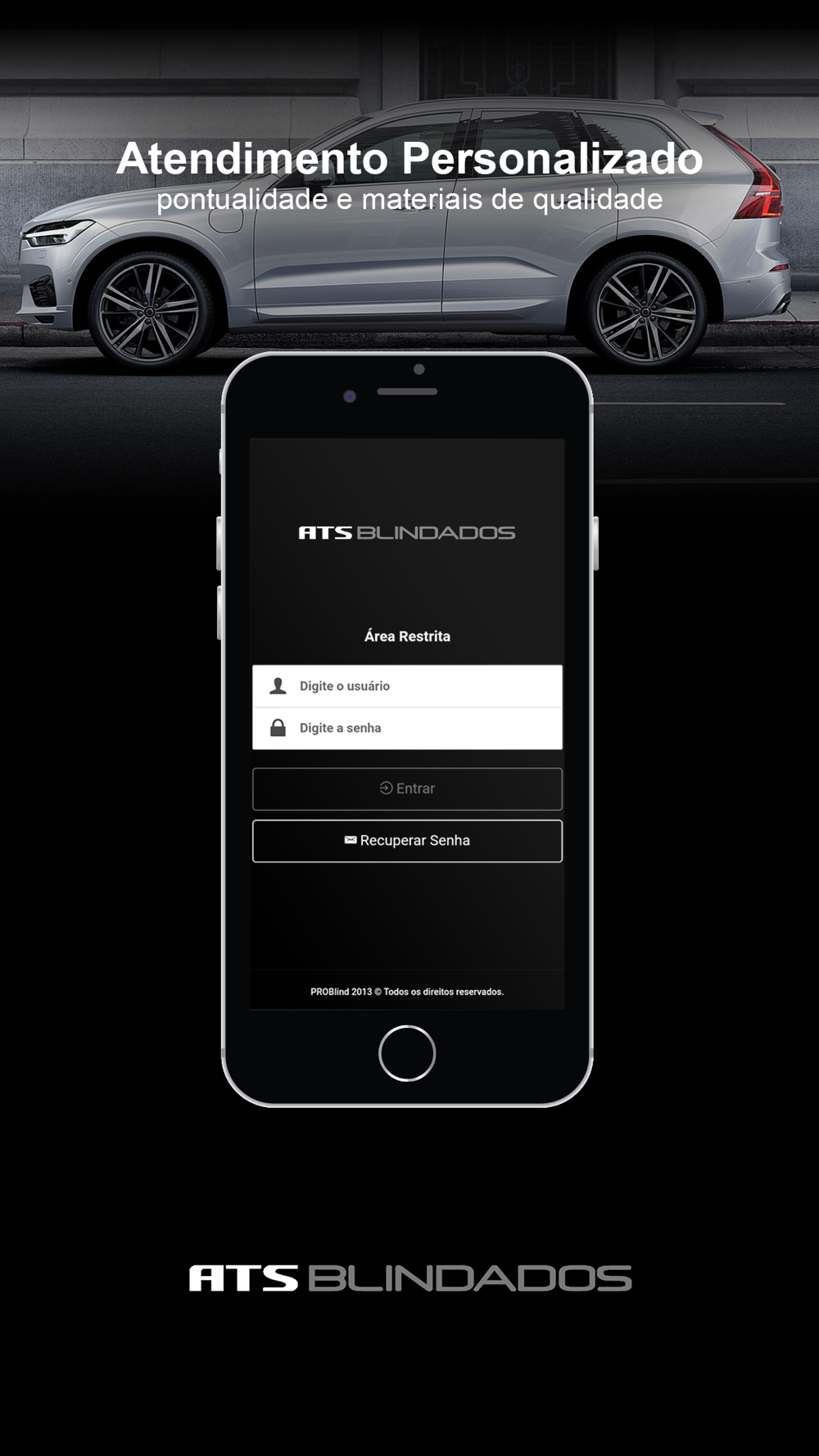 Todos os clientes da ATS podem utilizar o aplicativo e acompanhar o andamento da blindagem do seu veículo, assim como acessar dados da venda/contratação.