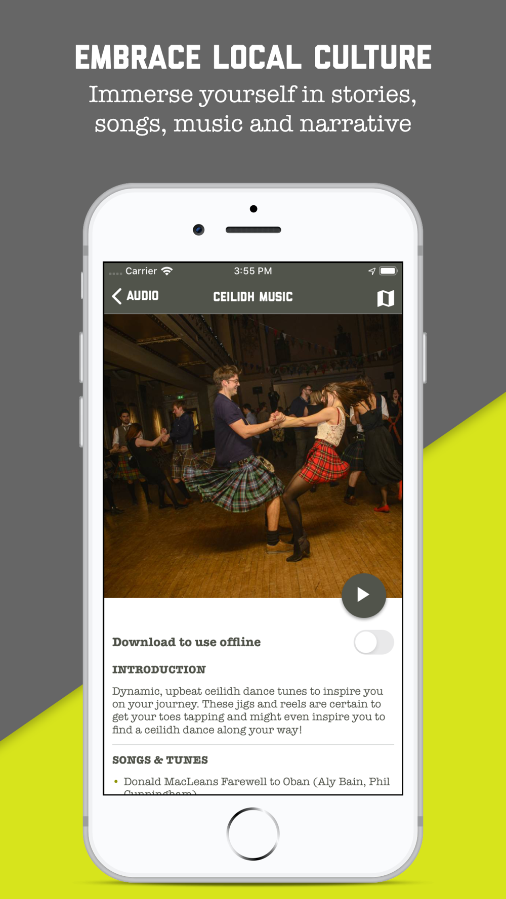 Audio to accompany you - Be moved by music and songs and enjoy stories about the surrounding area.