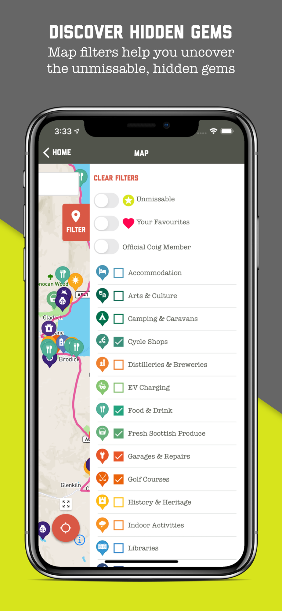 Tailor your trip - Powerful map filters let you tailor your trip, whether you want to discover a hidden gem, find a scenic view, natural wonder or historic building. Or even just the closest car park!