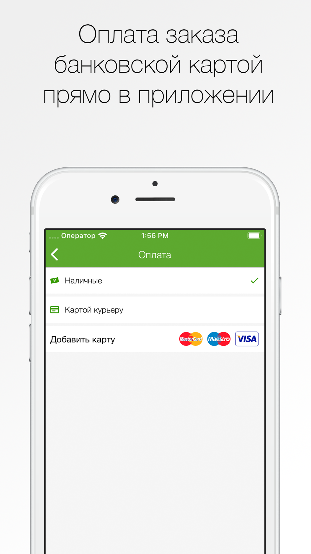 Выберите способ оплаты: Наличными или картой. Примите правила оплаты и нажмите кнопку “Заказать”.