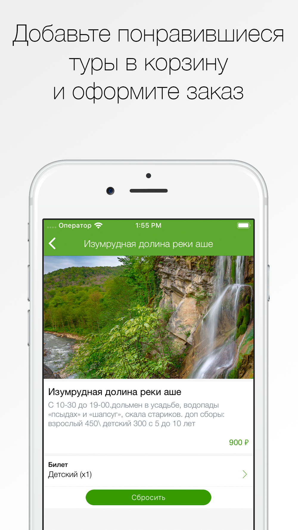 Как сделать заказ в приложении “Молодежный Туризм”: выберите понравившиеся позиции из меню, добавьте их в корзину и перейдите на экран оформления заказа (по нажатию на иконку корзины).