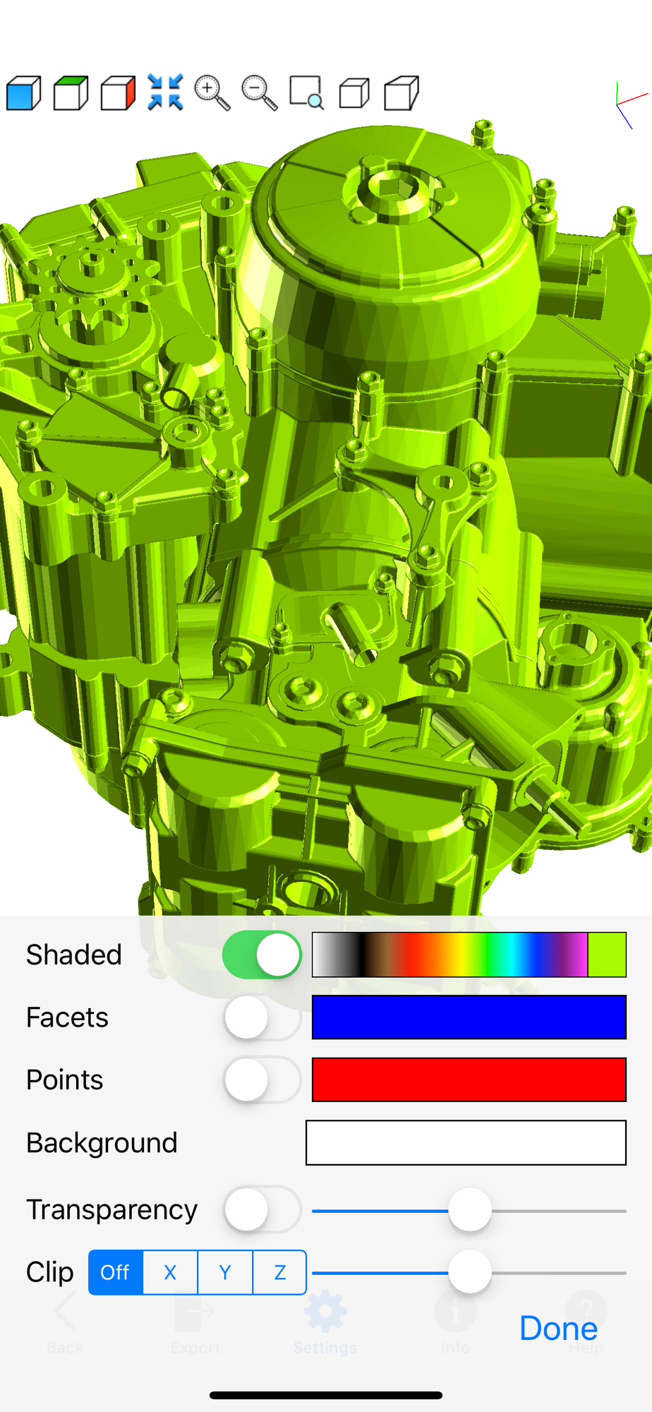 - Obtain info on the model: triangle count, bounding box, area, volume.