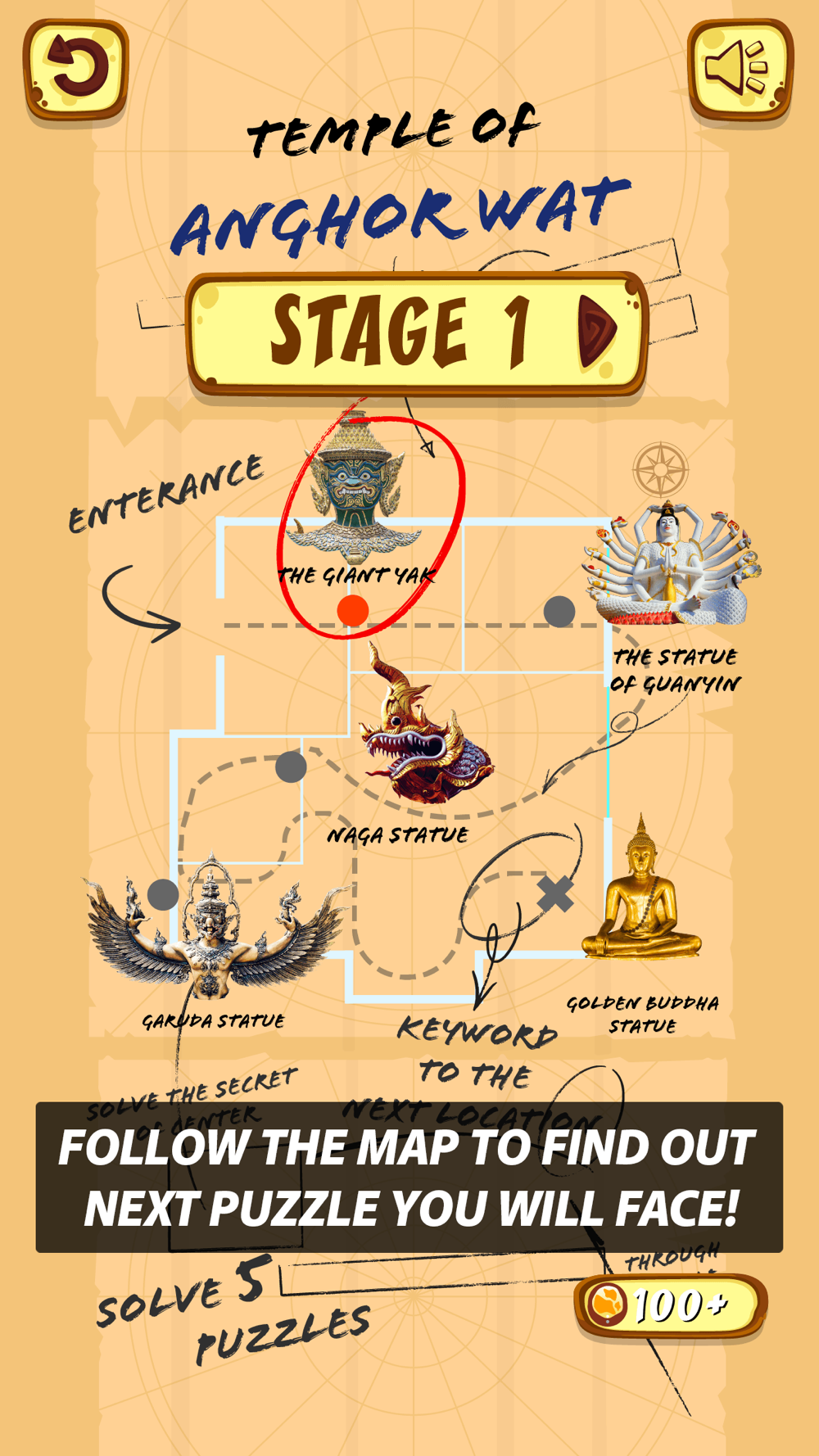 Solve the mystery in the temples by finding the right words and enjoy a thrilling escape room mystery word game.