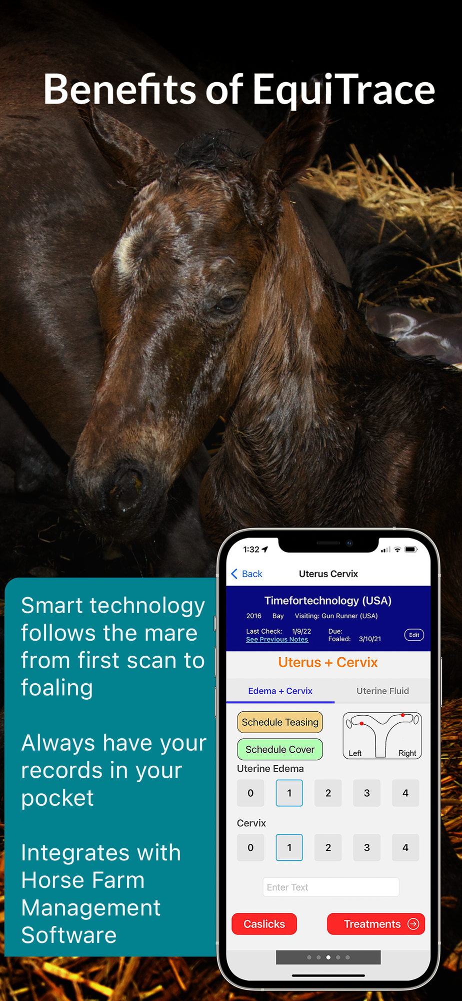 EquiTrace helps avoid medication errors. It supports rapid scheduling of treatments for horses, including providing suggestions regarding withdrawal times. Designed for rapid, accurate entry of treatments.