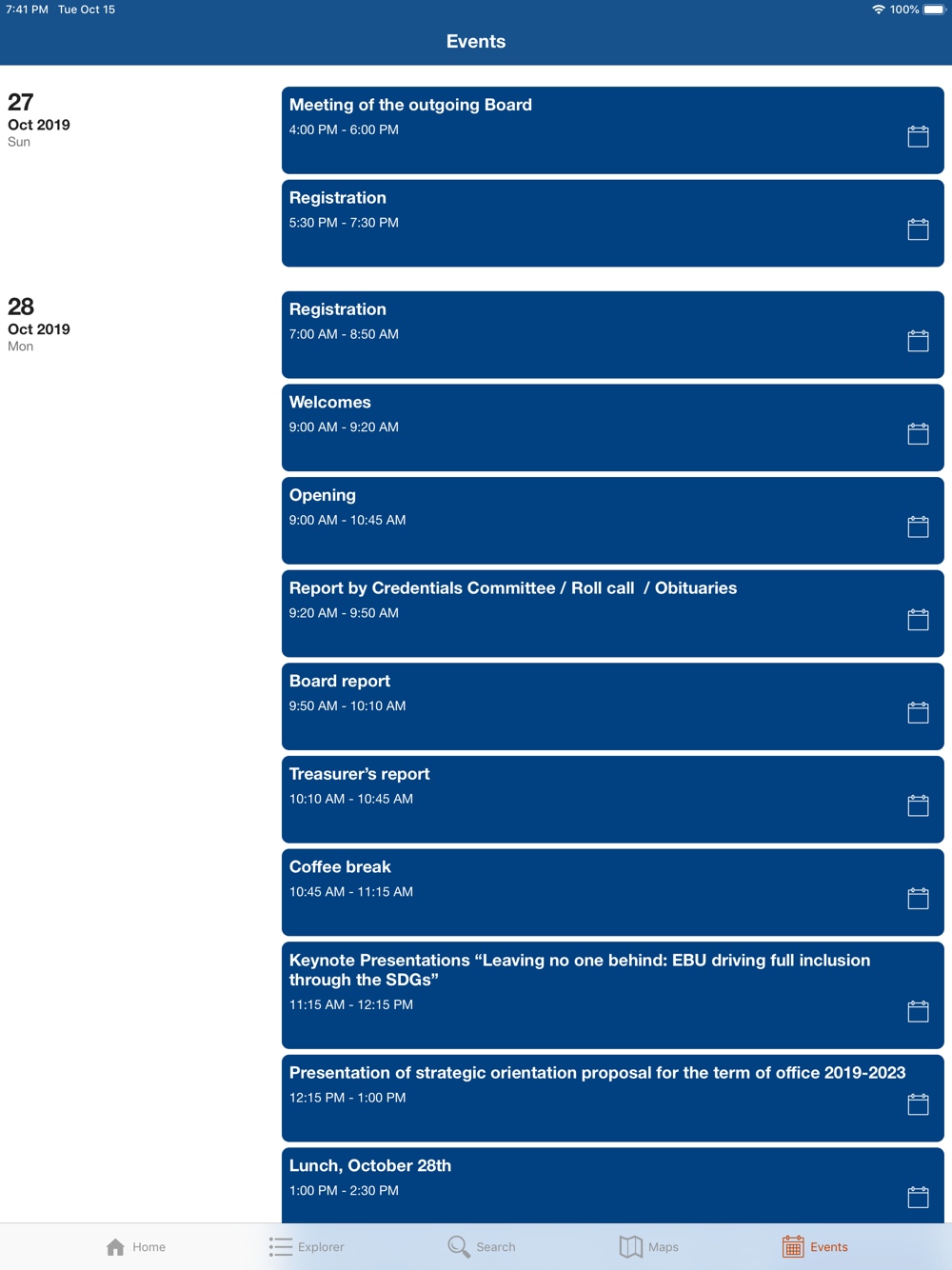 The official app of the 11th EBU (European Blind Union) General Assembly which will be held in Rome from Monday, October 28, 2019 to Wednesday, October 30, 2019.