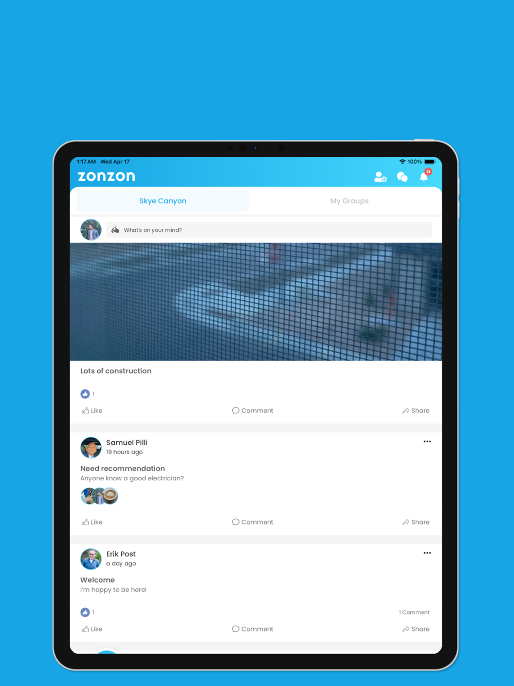Zonzon is a new socially positive community network app for micro communities like apartments, condos, and HOAs.