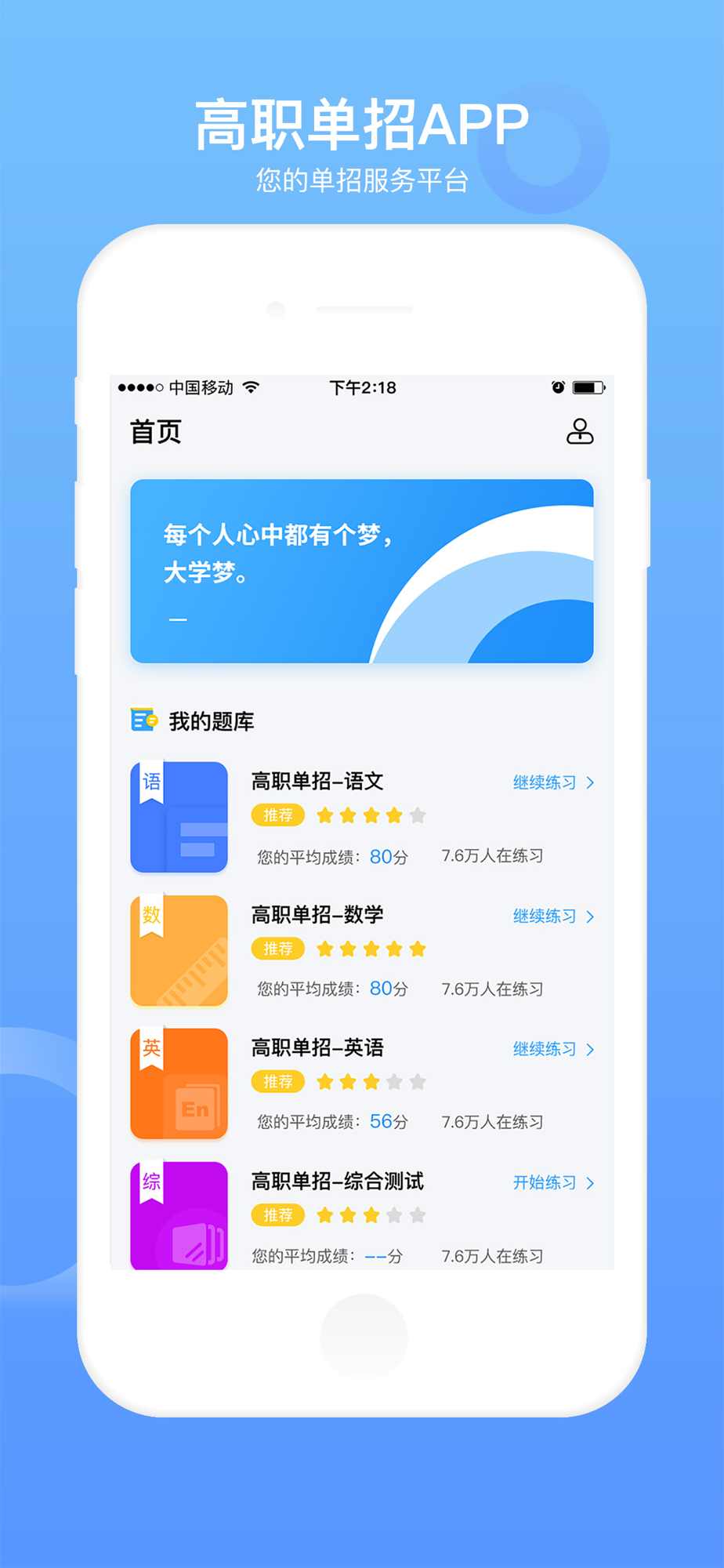 单招考试题库APP是一个综合单招考试中提升学习成绩的学习工具。涵盖了该考试热点、难点和常考点的考试题库,是您学习和拿高分的好帮手。