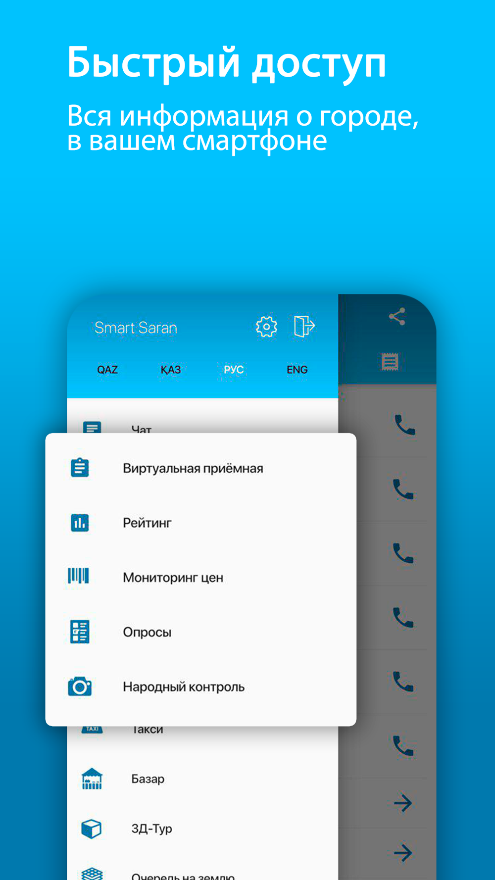 Мобильное приложение Smart Saran предоставляет возможность жителям города бесплатно пользоваться онлайн-сервисами и мгновенно получать самую актуальную и необходимую информацию не выходя из дома благодаря смартфону.