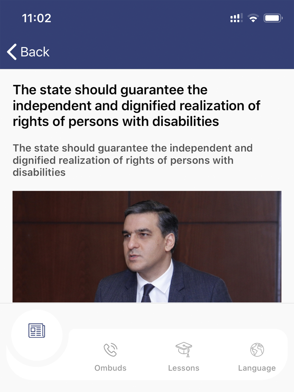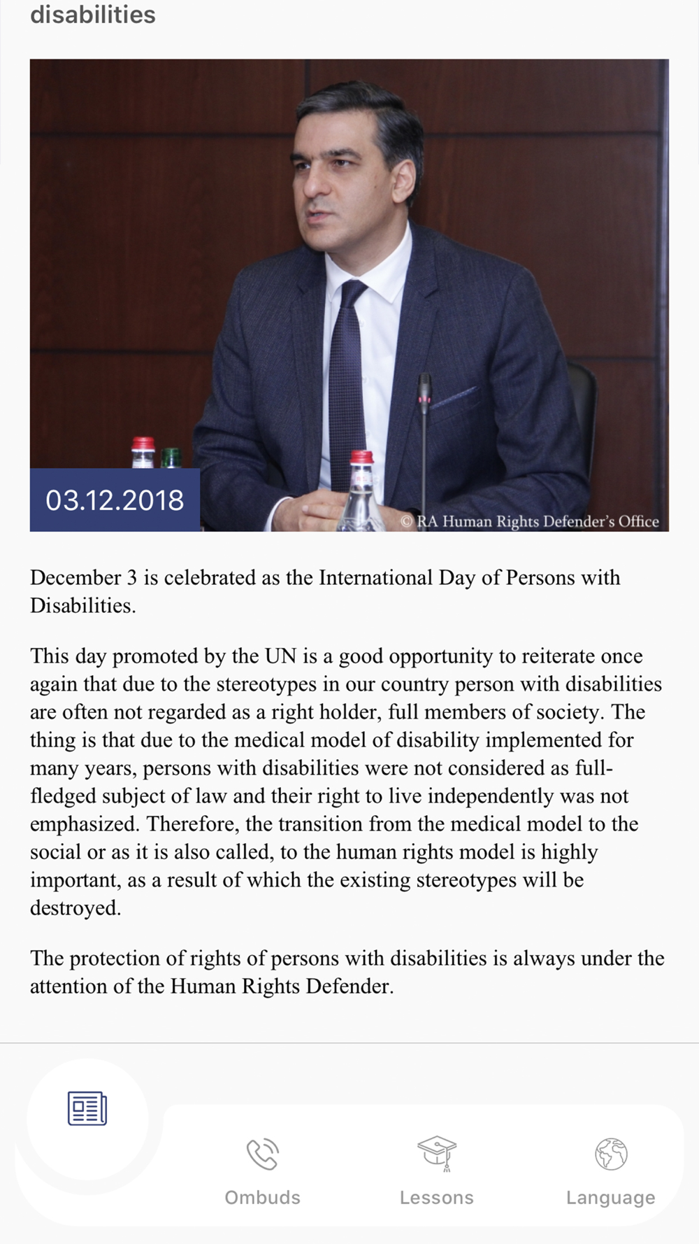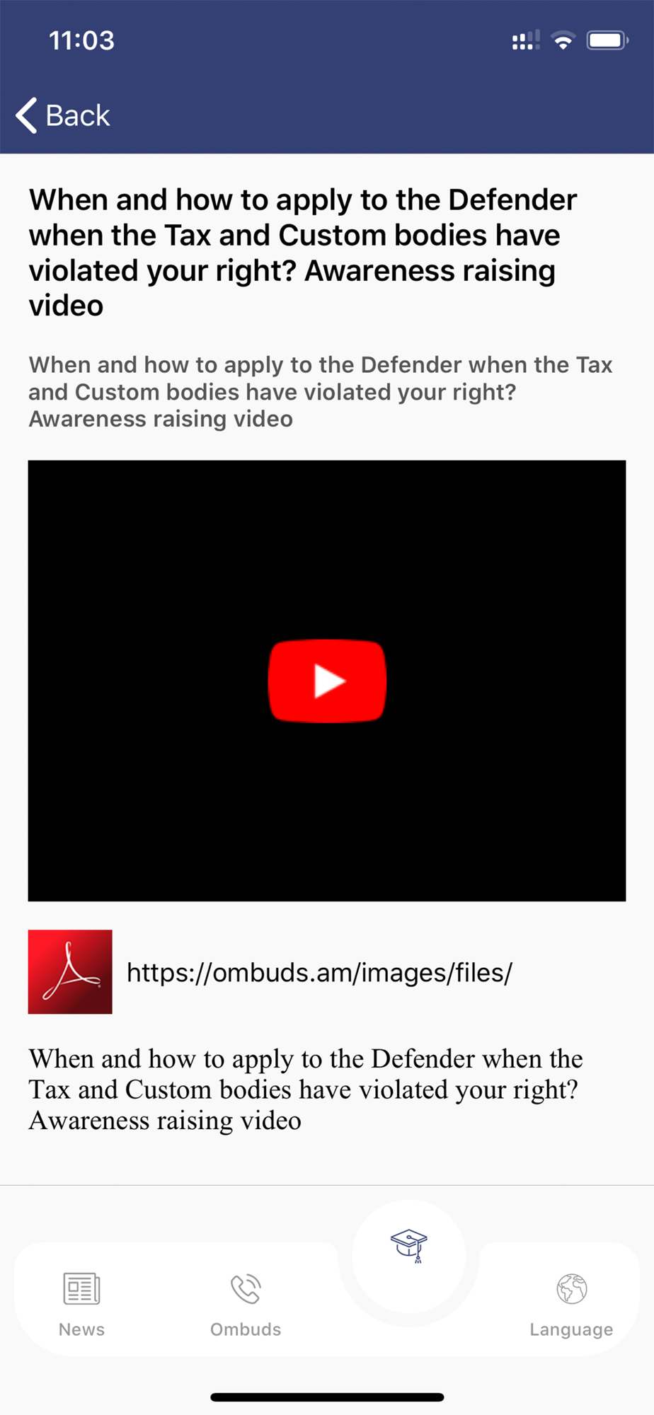 In addition to the Ombudsman's website, you can also use this app. It keeps you up to date with all news and training available on the website easily and quickly. With the app you can immediately contact the Human Rights Defender's Office by calling or sending a message.