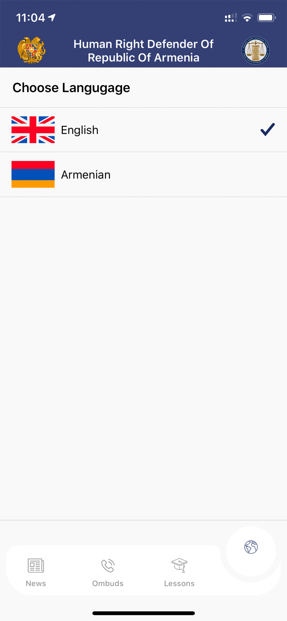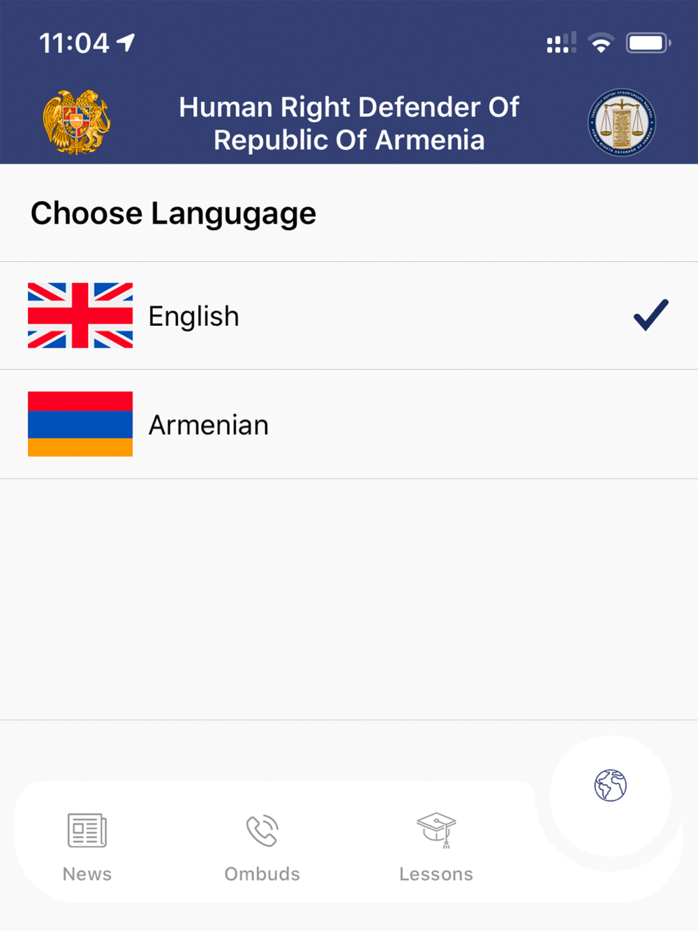 The application is available in Armenian and English.