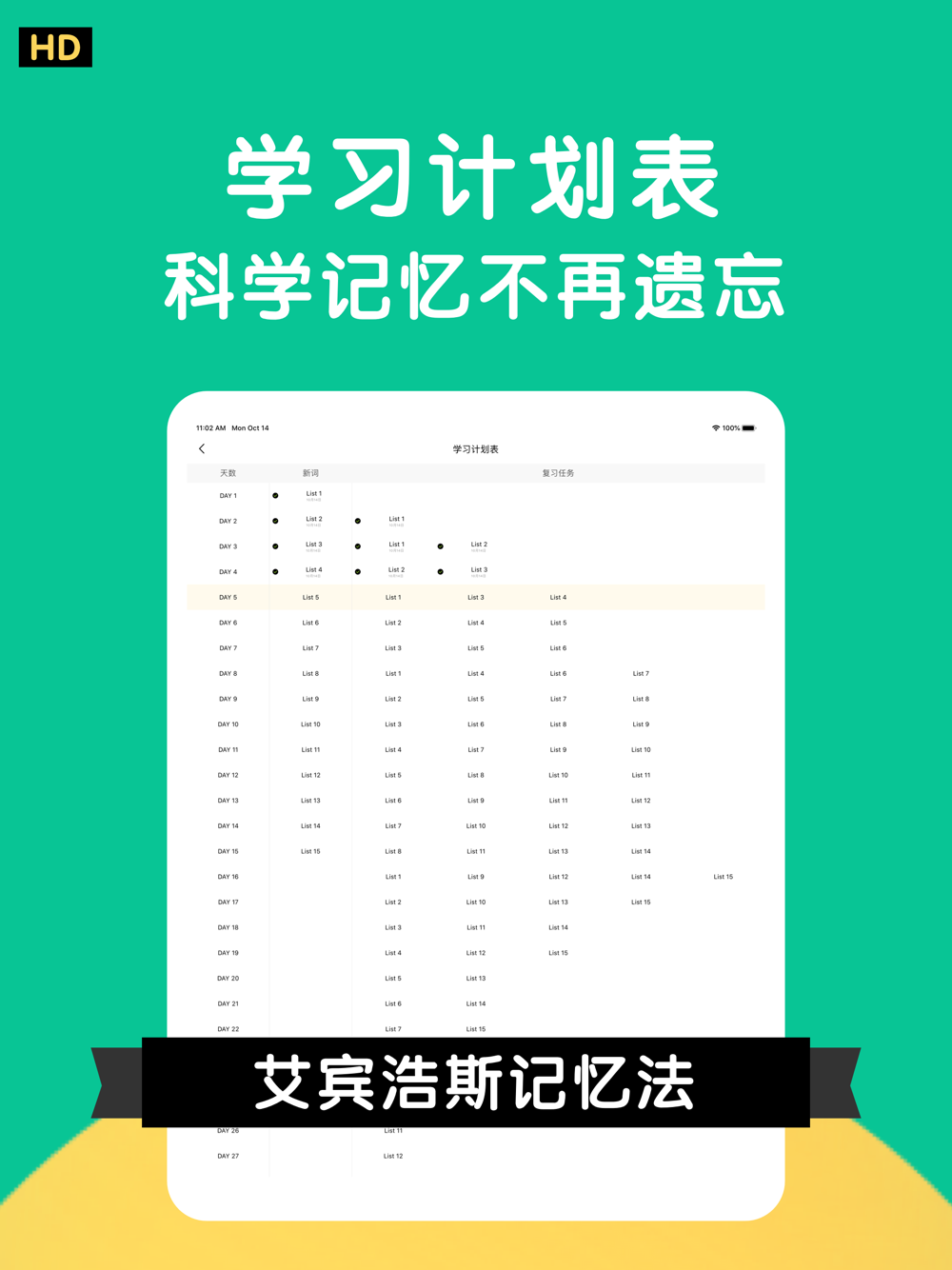 它根据「艾宾浩斯遗忘曲线」打造、并配合中国人背单词的学习习惯;让你不仅单词背得快记得牢,还专注到根本停不下来!