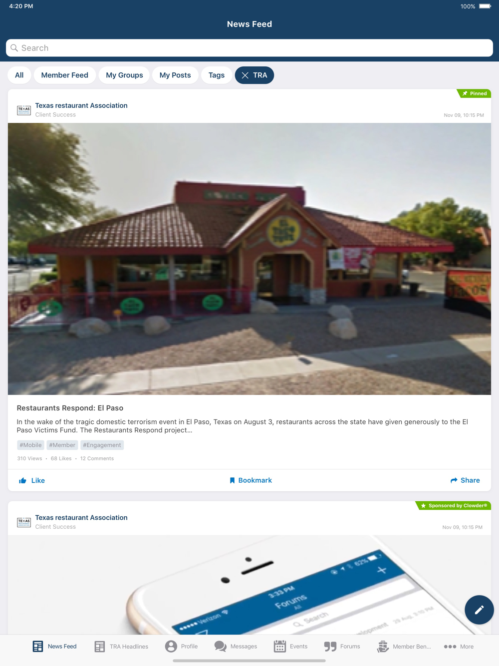 Put a fork in trying to manage all of your TRA membership information and download the brand new TRA app. In this app, TRA members will be able to connect with other restaurant and allied members throughout the state, view curated news about the restaurant industry, chat directly through private messaging and in user created groups, and access a searchable resource directory.
