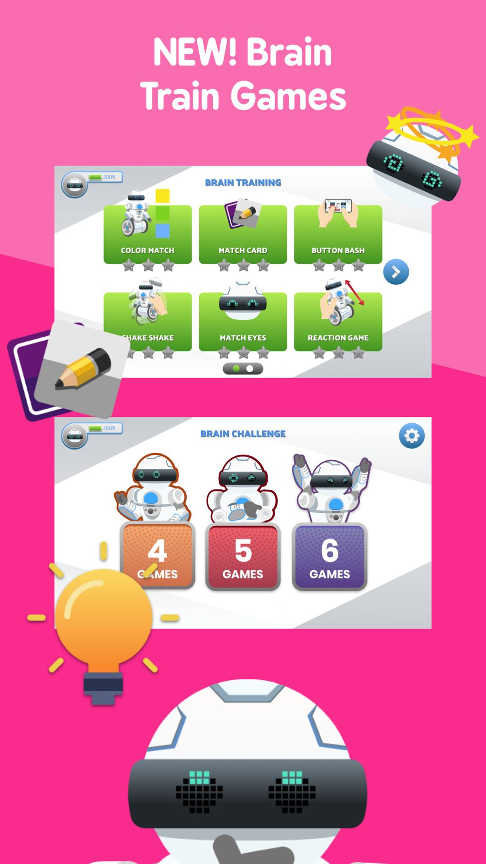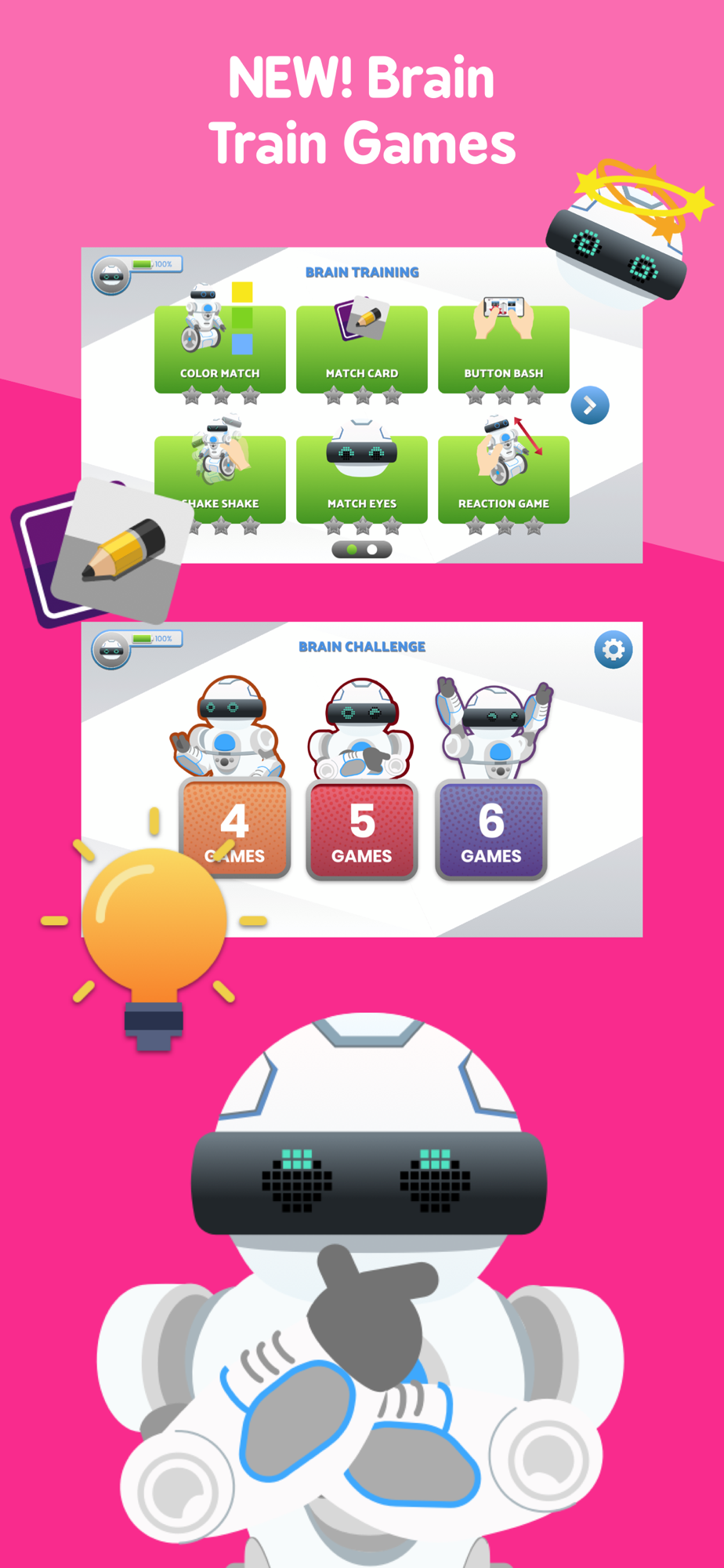 • Color Match: Match colors in the app to MiP™ Arcade's chest light. How many colors can you match before time runs out?