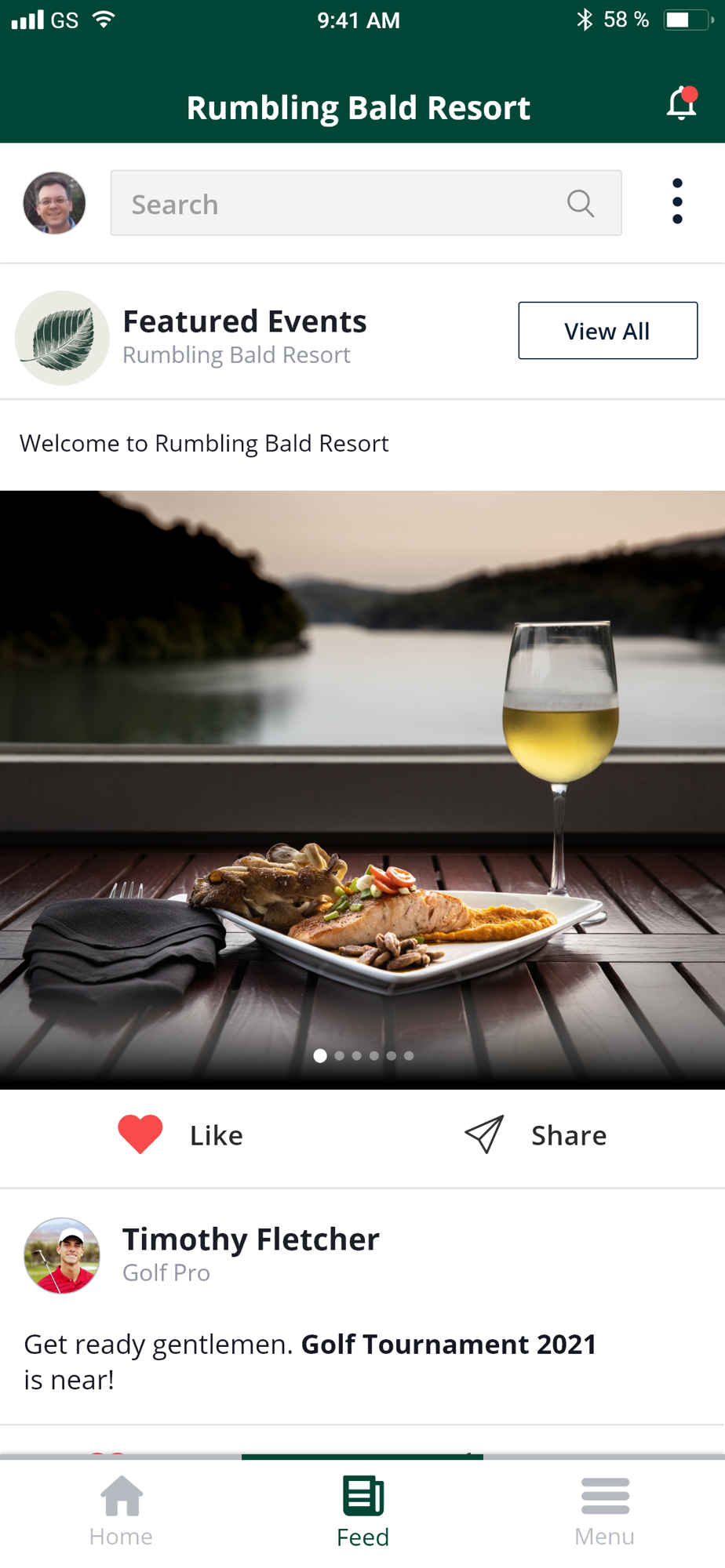 Rumbling Bald on Lake Lure Mobile App can monitor statements, explore the directory, stay updated on club events, make reservations, and more.