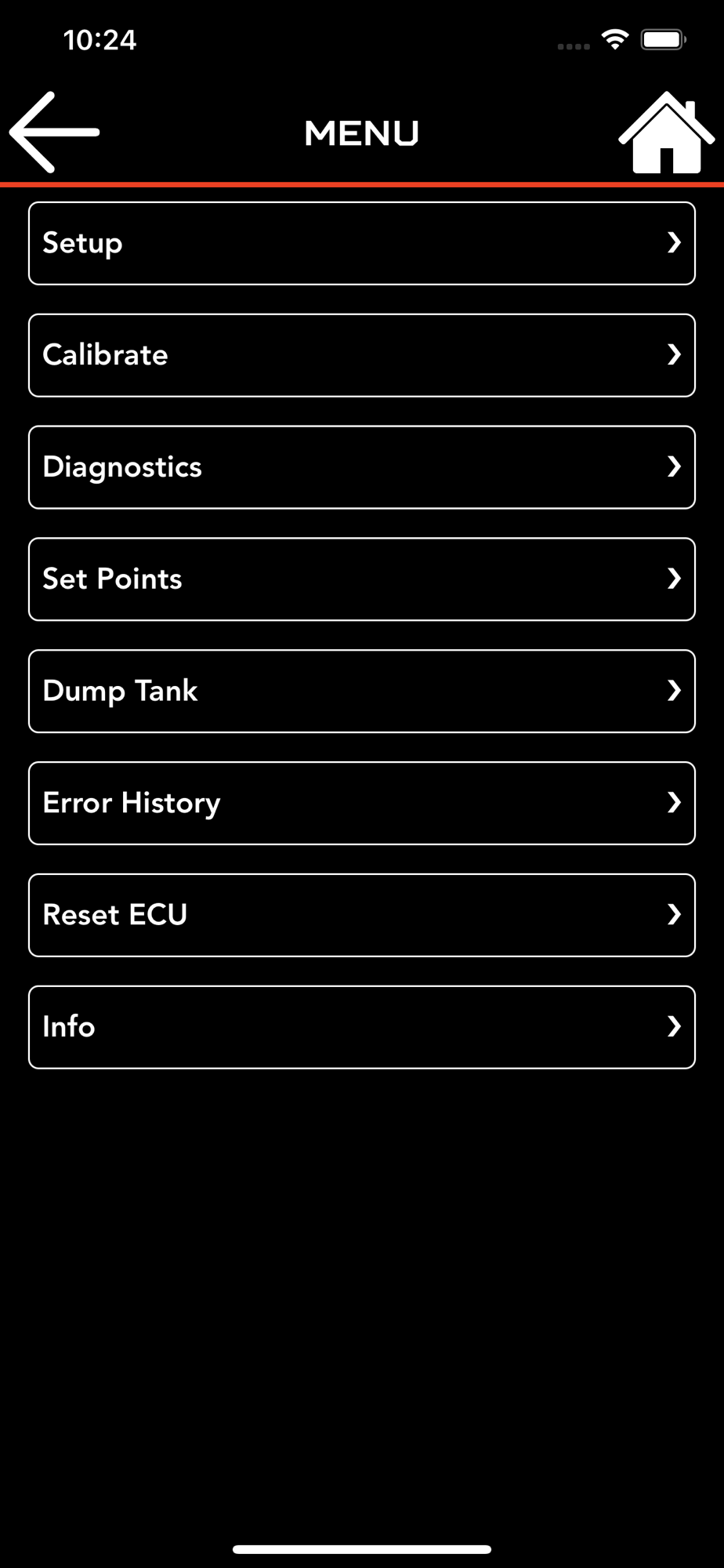 The menu system provides an intuitive experience that allows the user to set features such as auto level on start, choose compressor trigger pressure, Calibrate the system, learn wireless devices, view errors, as well as a full diagnostics suite.
