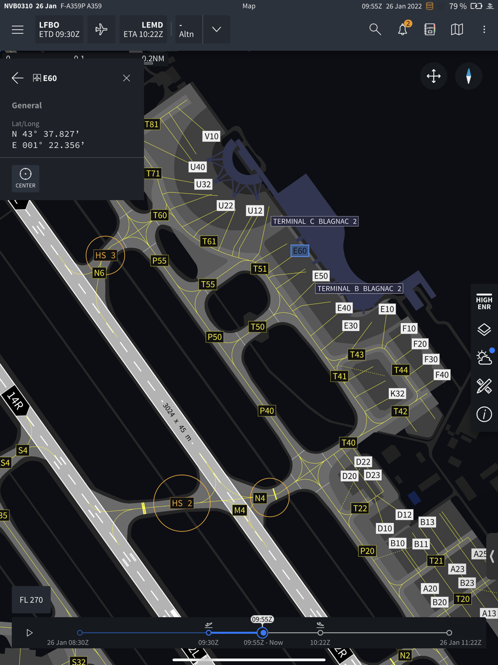 * AMM (Airport Moving Map) seamlessly integrated into the Enroute Map to enhance situational awareness. It displays NAVBLUE Airport Mapping Database (AMDB) in 2D or 3D mode. Drawing and distance measurement tools can also be used by the pilot.