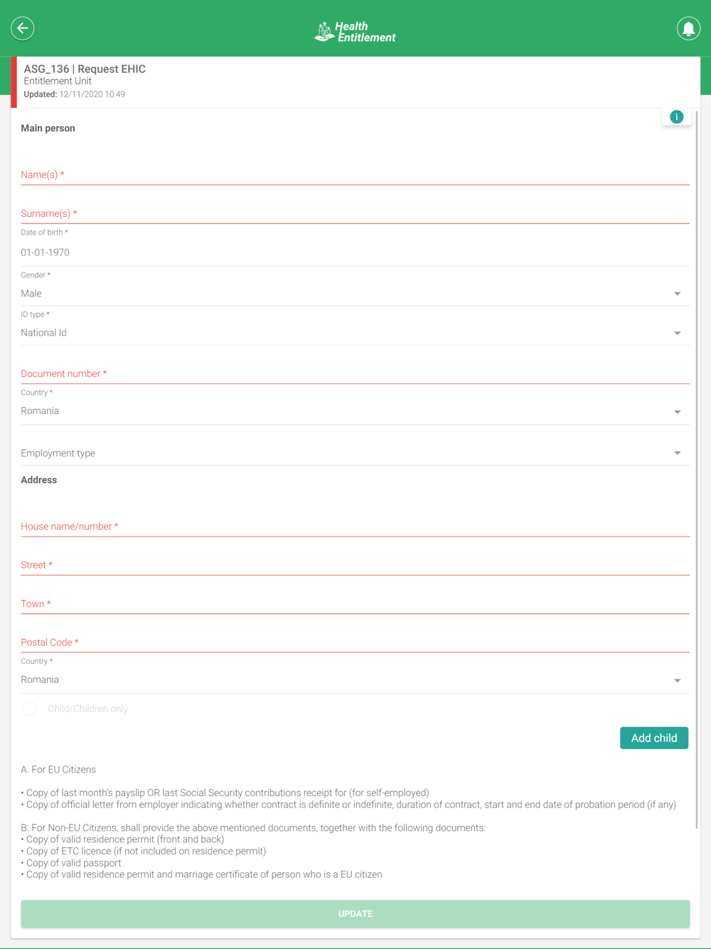 • Request, Renew, Cancel EHIC;