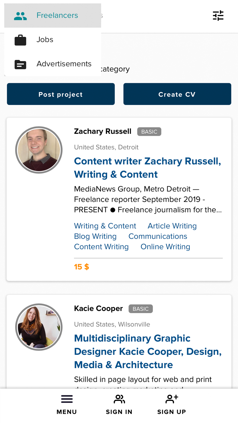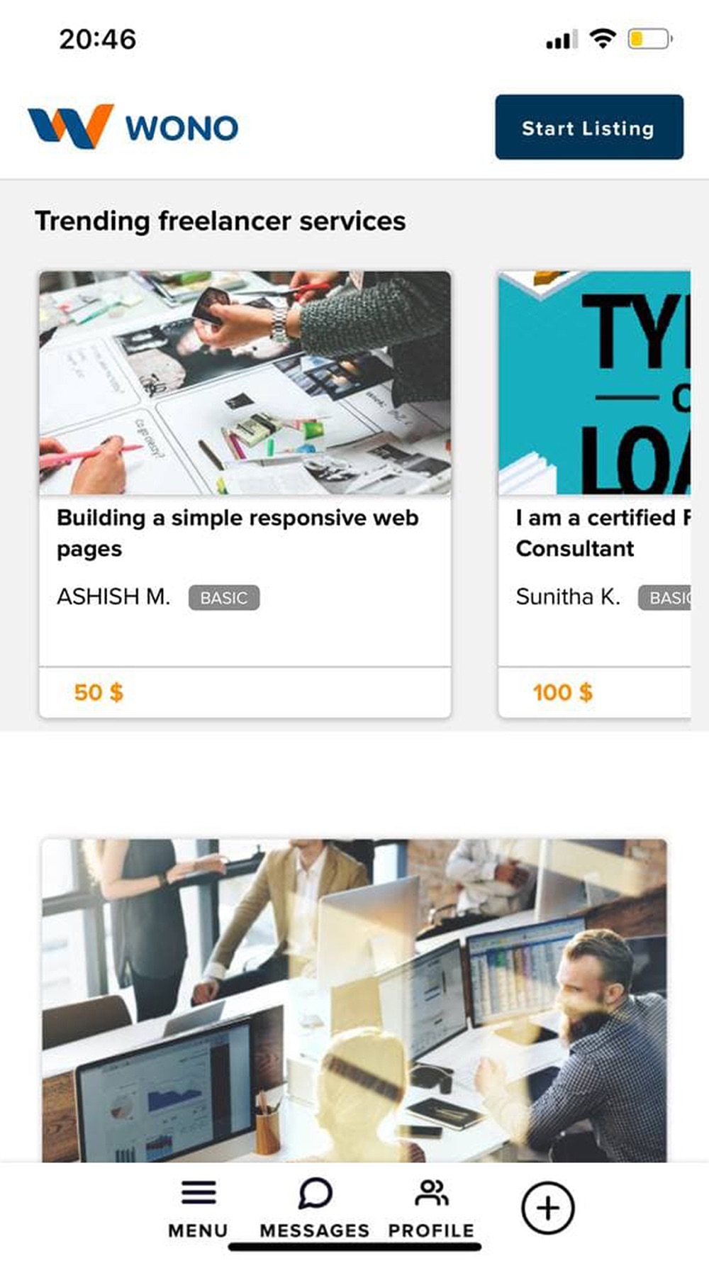 We offer a hub for users to post jobs to be completed by a freelancer or those looking to work. Wono users can post different types of projects on the platform, find jobs or freelance projects and services.