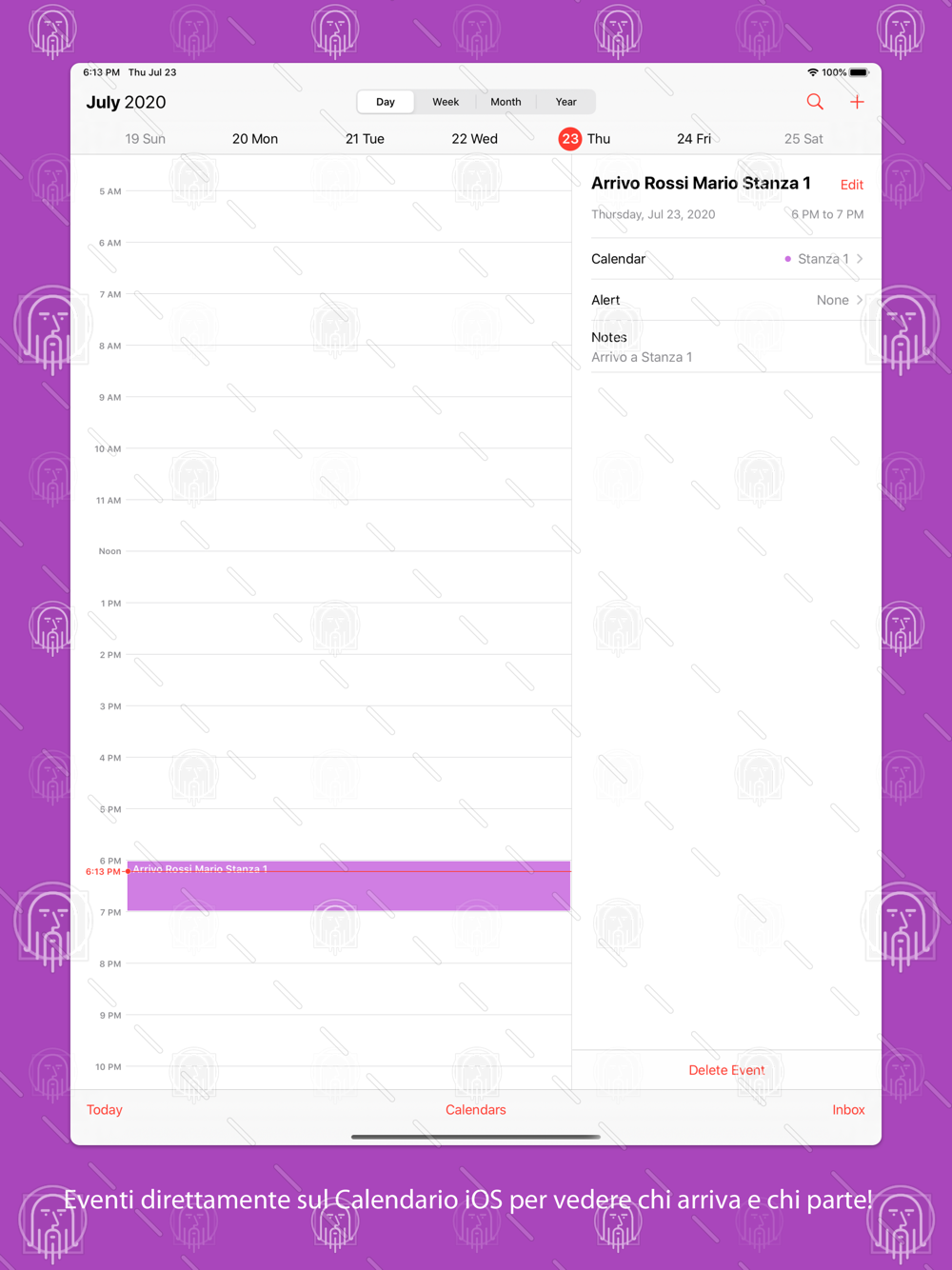 -Ogni Prenotazione viene registrata e crea eventi sul calendario iOS per l'arrivo, la permanenza e la partenza dell'Ospite.
