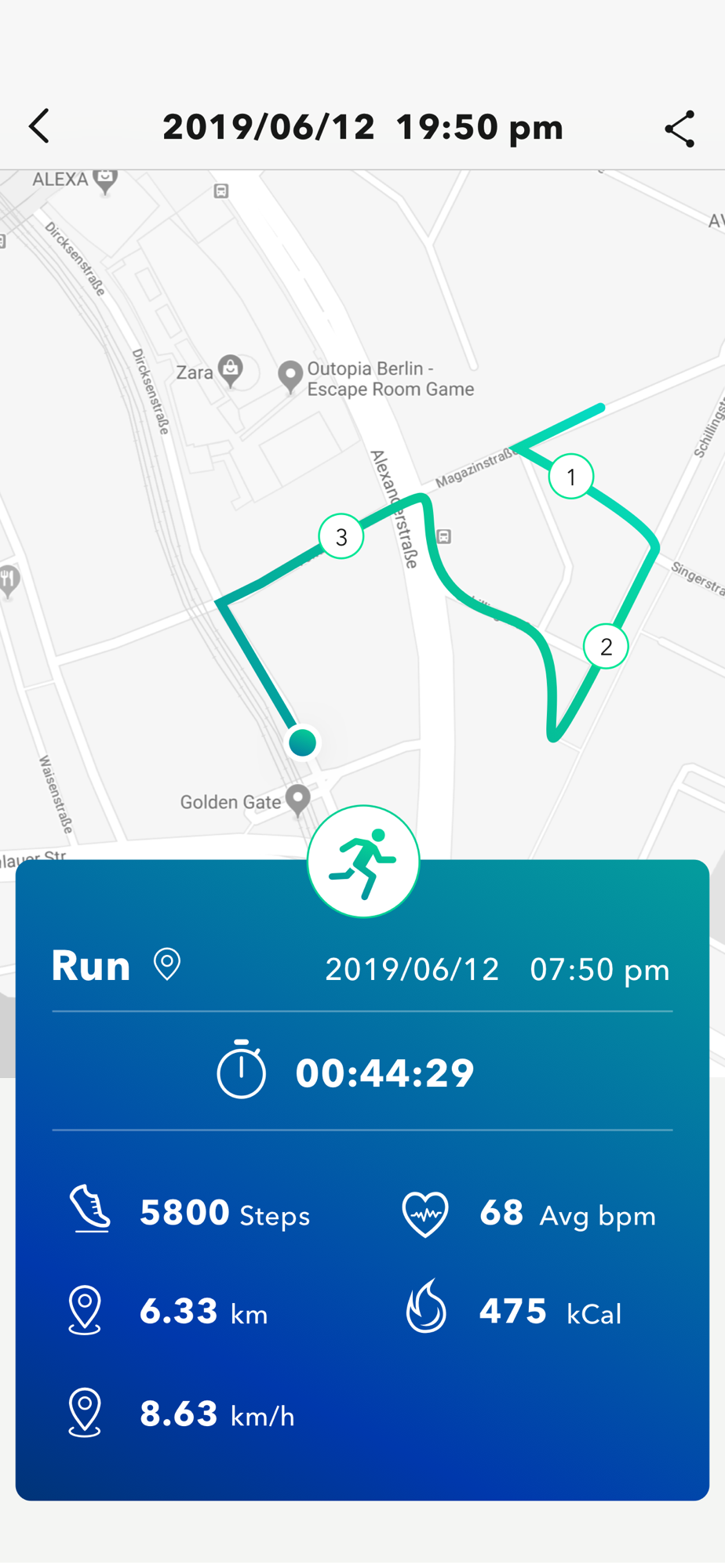 24-hour tracking of your steps, distance, calories burnt, active time, and daily goals reached.