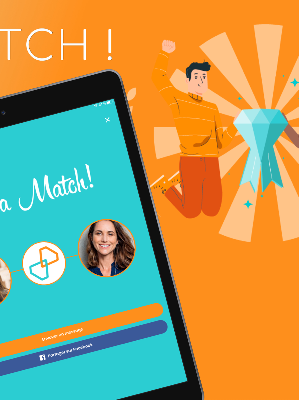 - Si vous swipez tous les deux à droite ... C'est un MATCH,( : ) Rendez-vous dans le Tchat !