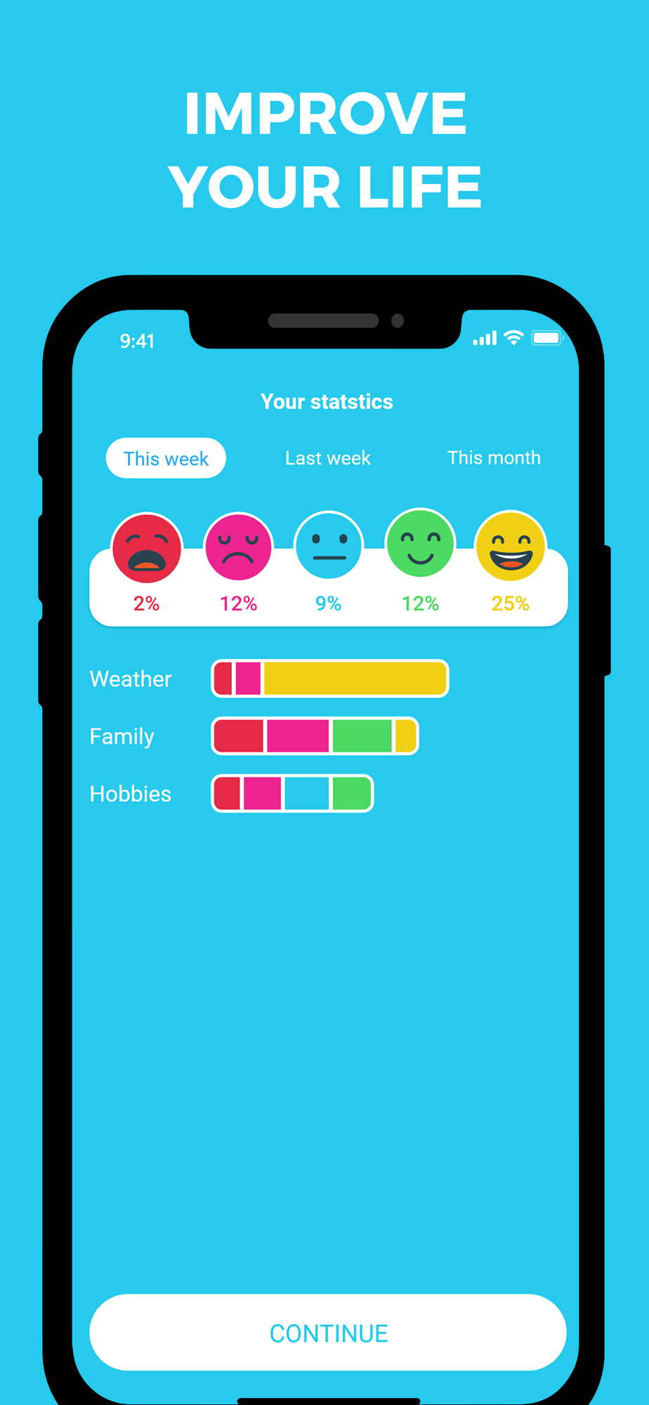 How does it work? It’s simple! Enter your mood every day, ideally in the morning. There are five moods to choose from. Next, tell us what has affected your mood, such as your family, your friends or the news. The Mood app will then generate a report about you over different ranges of time to show you what has influenced your mood the most. Thanks to the Mood app, you’ll know exactly what’s been making you happy or sad. After that, try the tips the app will give you to make positive changes in your life. Get happier with Mood by FizzUp!