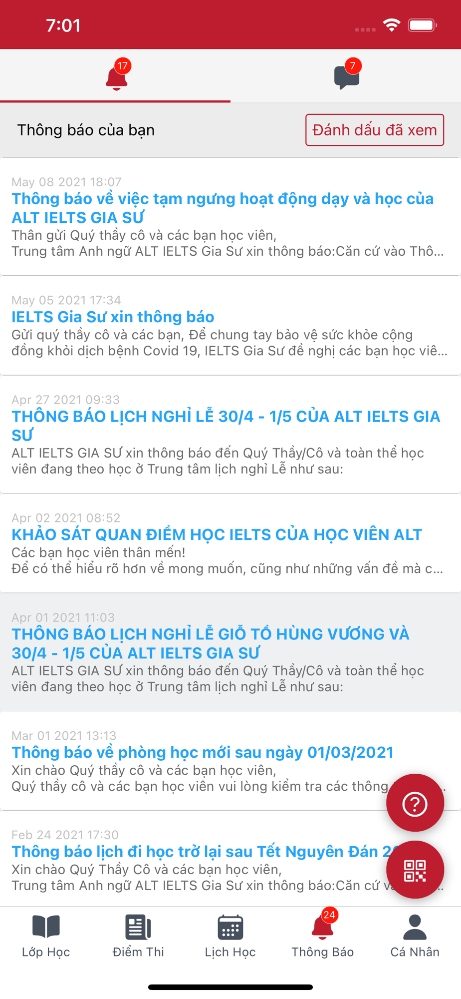 You will be automatically notified all the important notices related to your course such as class rescheduled, tutor leave/change, payment deadlines, course breaks.
