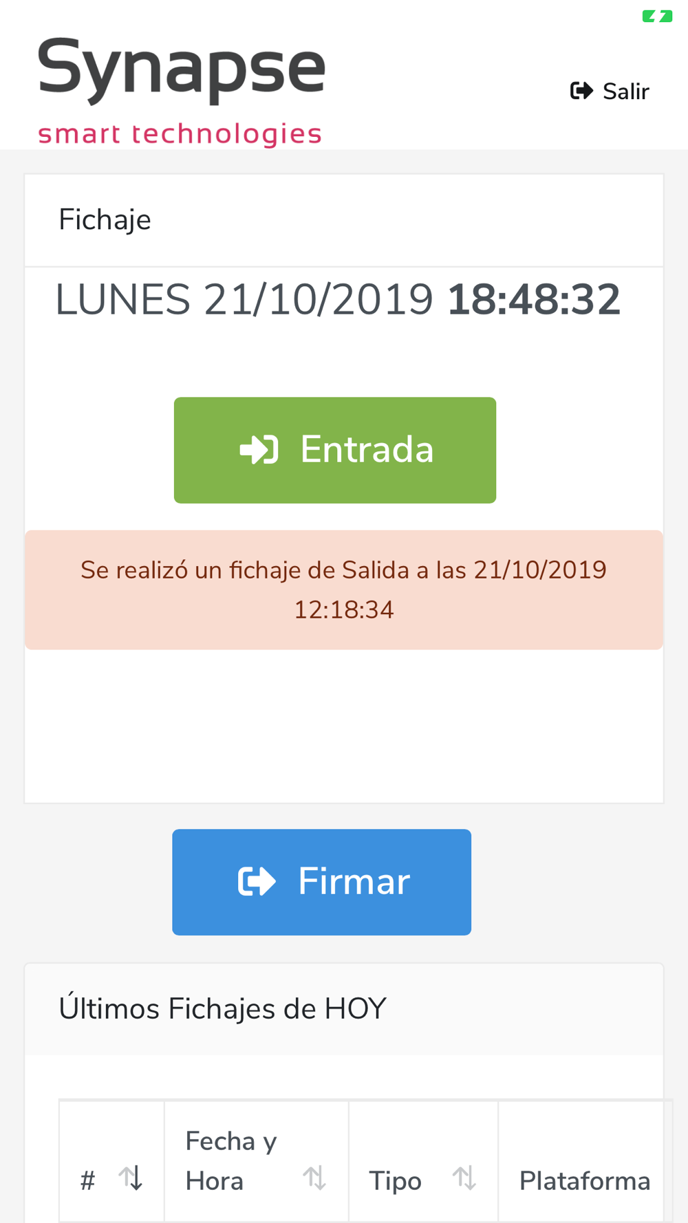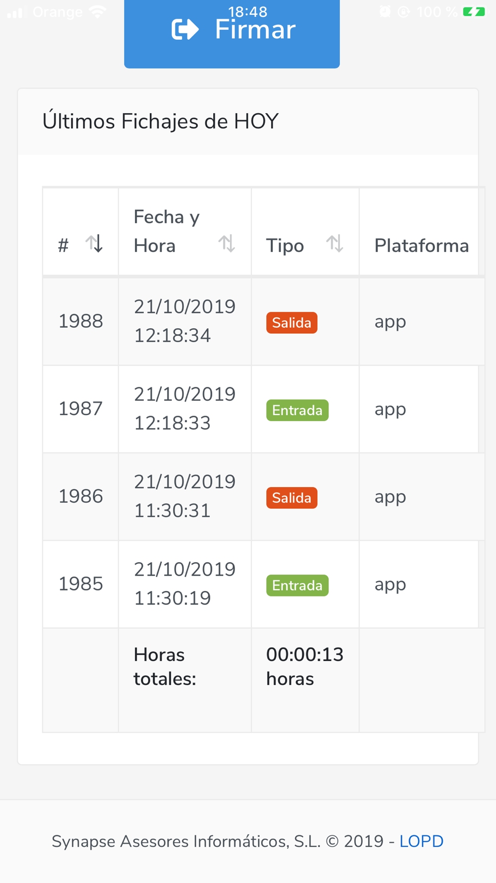 Registro para empleados de la jornada laboral, fichajes y firmas para la normativa española.