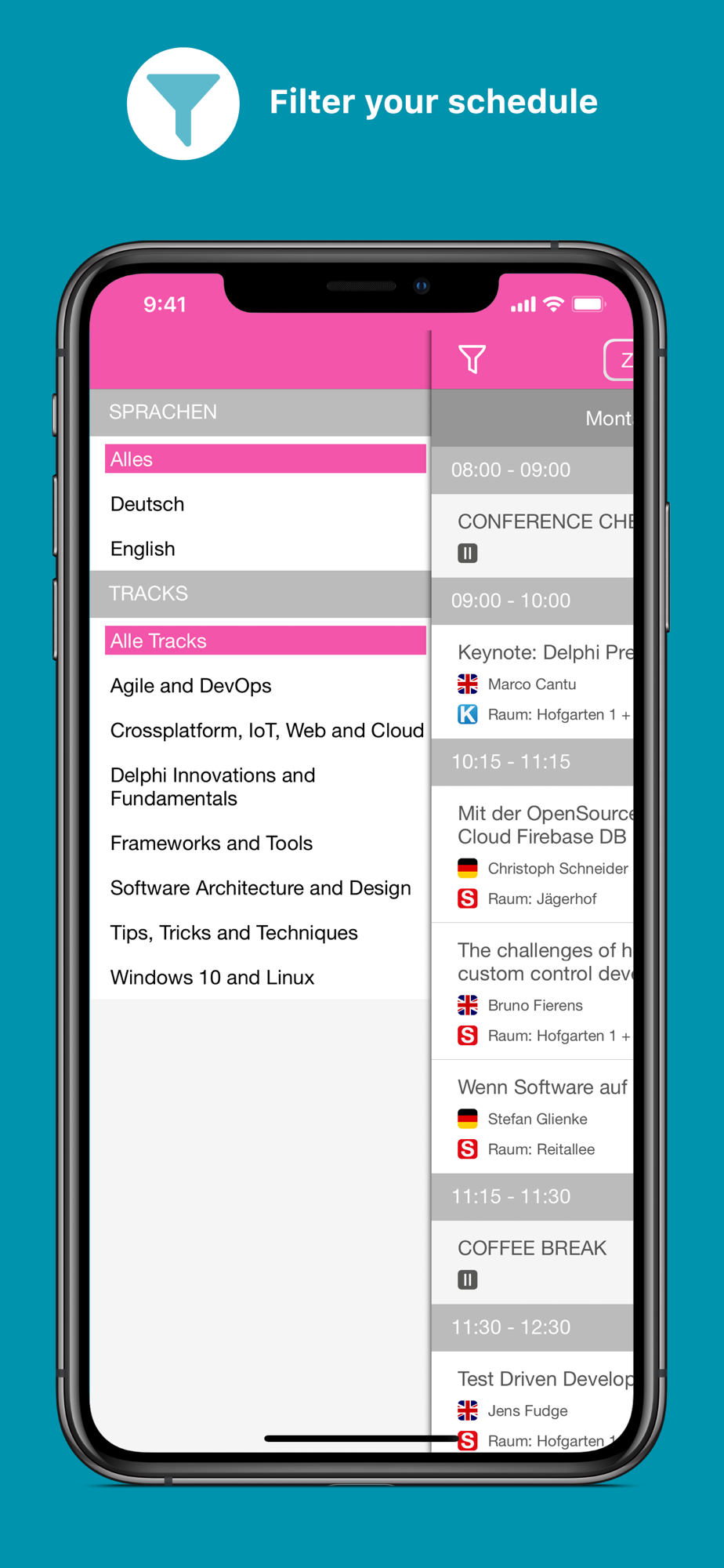 With the EKON 23 Event App the participants can put together their own personal schedule. The time planner and floorplan help with orientation during the event. The app gives you access to the complete programme and detailed information on sessions, workshops and trainers. With the ‘Favorites Function’, highlights can be marked. You will also receive notifications of important changes or announcements. In addition, you can access news on Twitter and give feedback on workshops, trainers and the entire event.