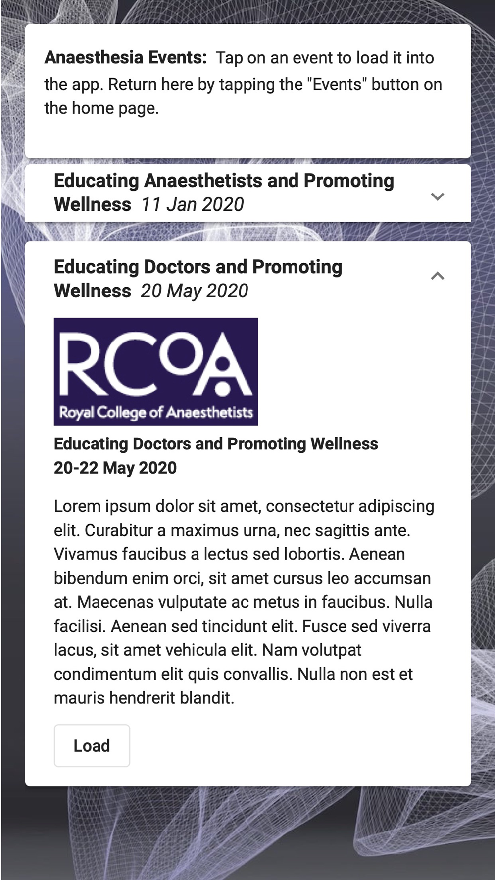 This app is your guide to upcoming anaesthesia conferences and small meetings.