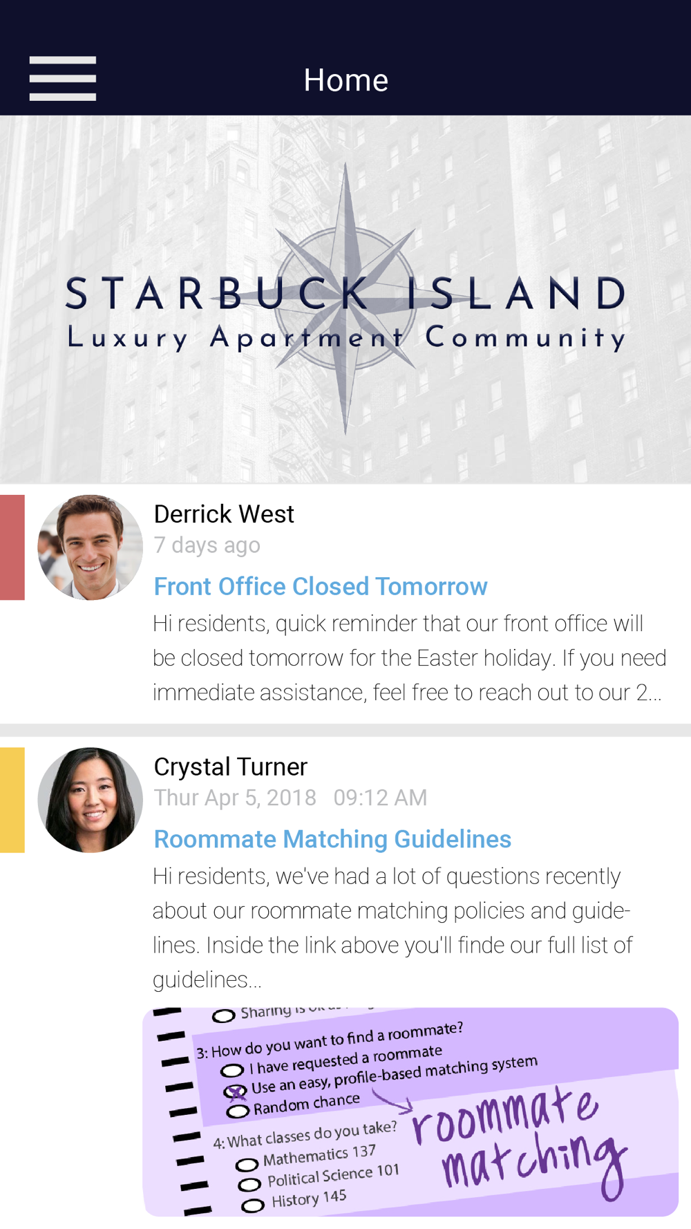 Starbuck Island is introducing a new and exciting app that will streamline communication between you and your community's leasing office!