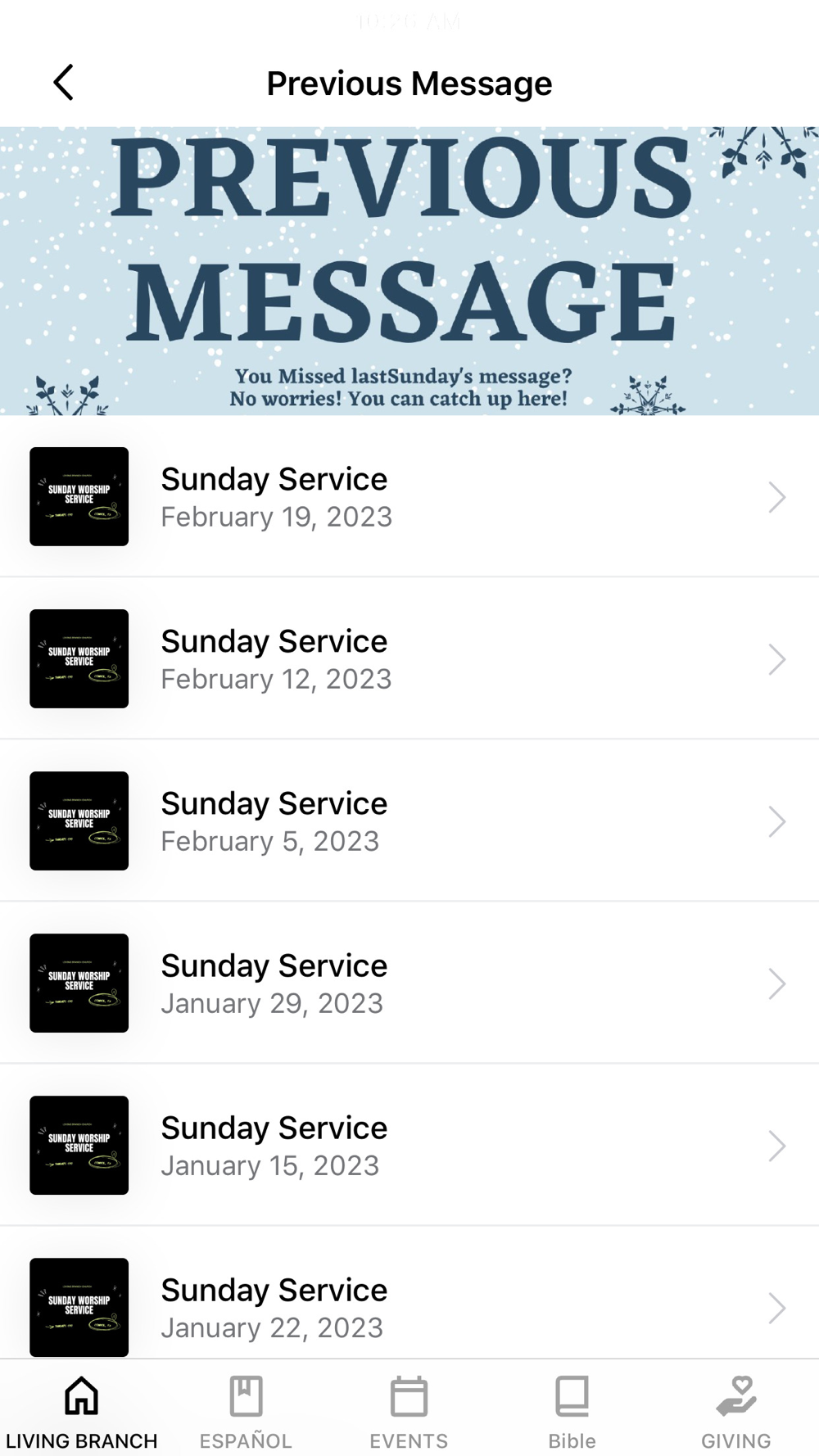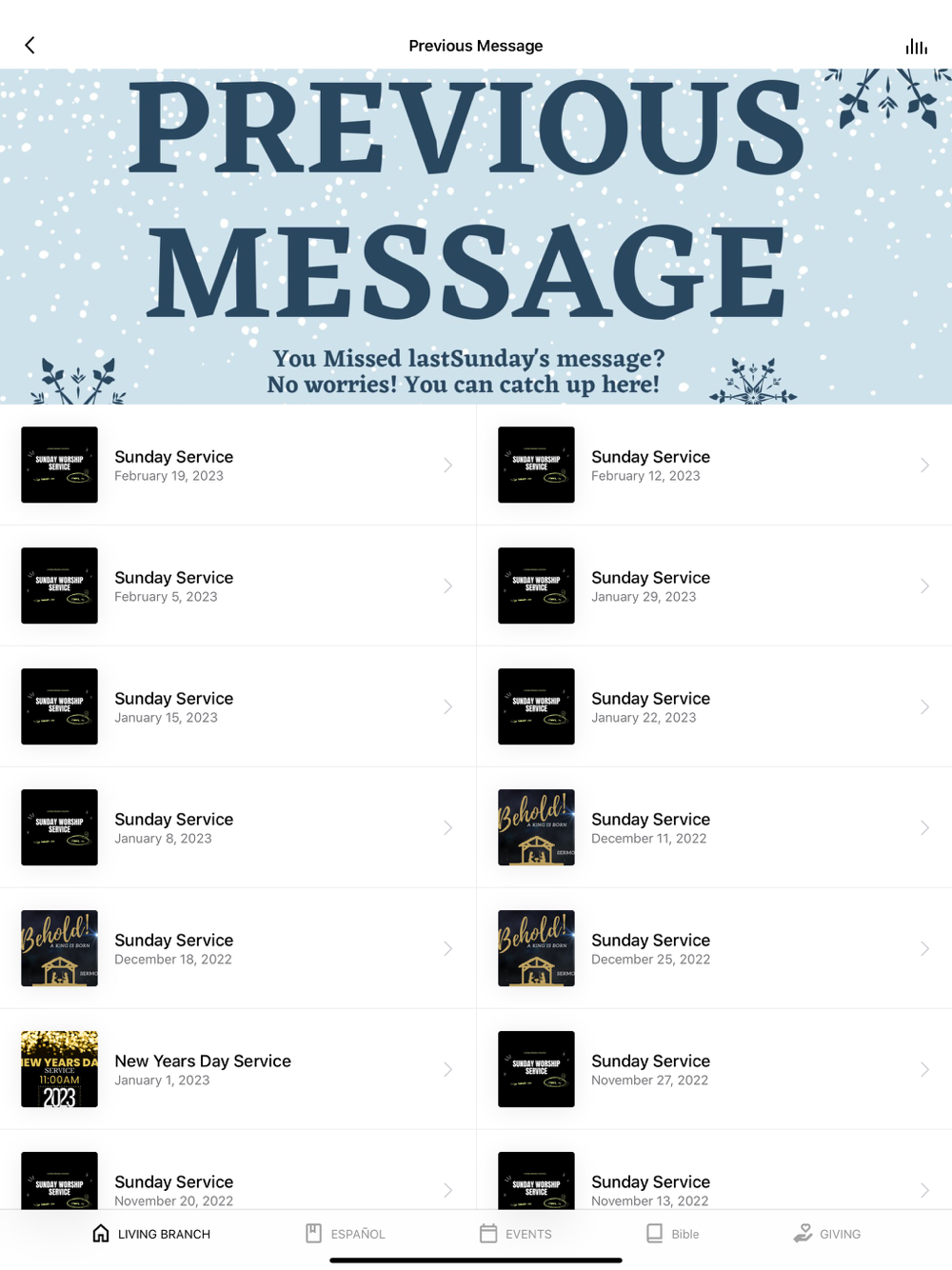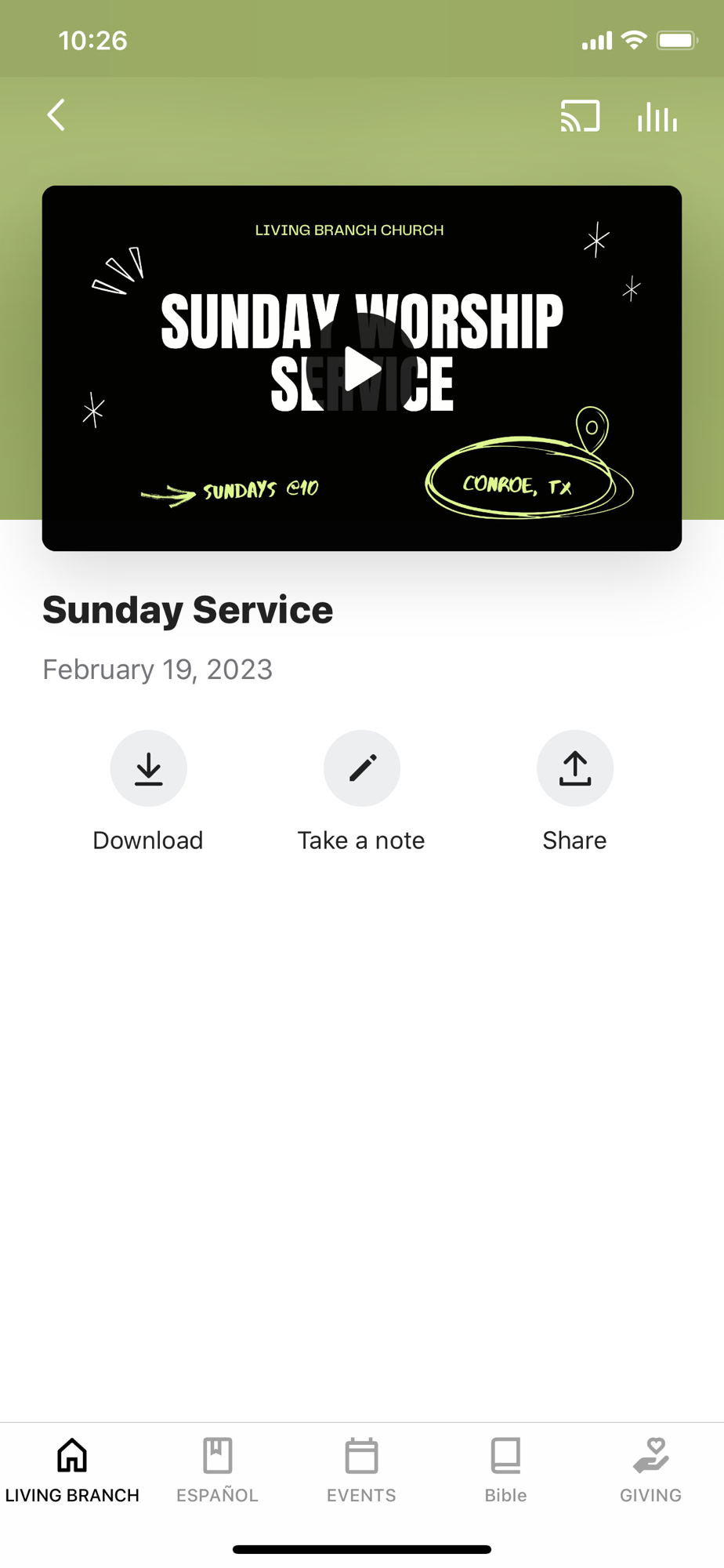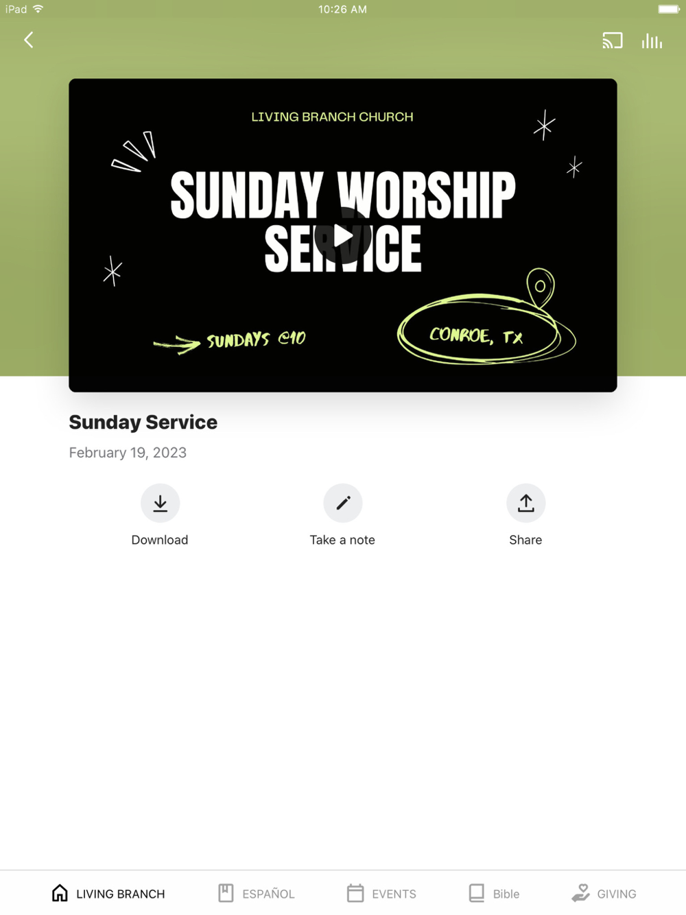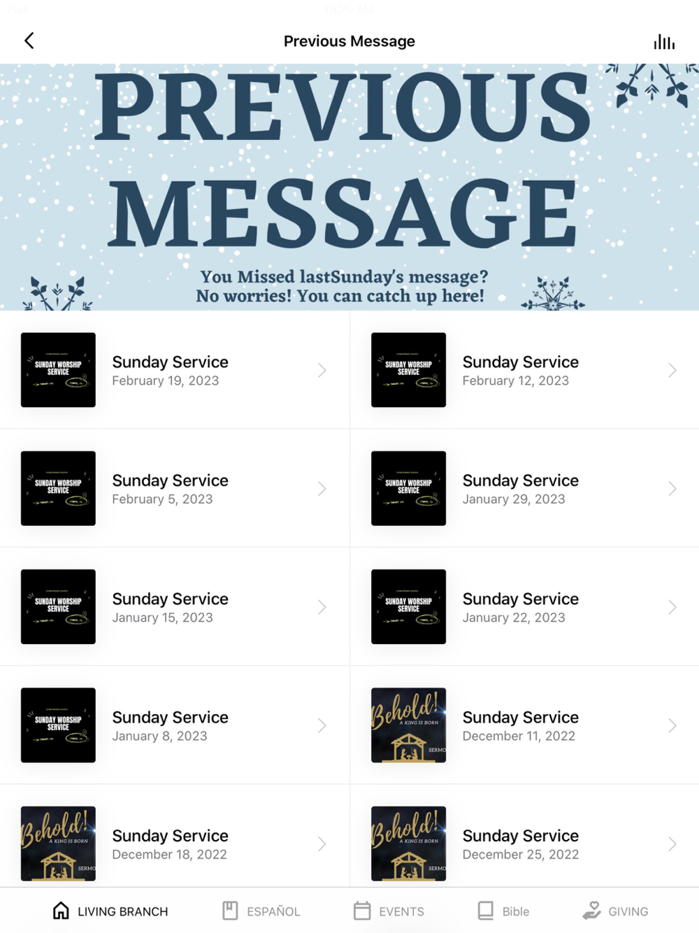 This app will help you stay connected with us at Living Branch Church. With this app you can:
