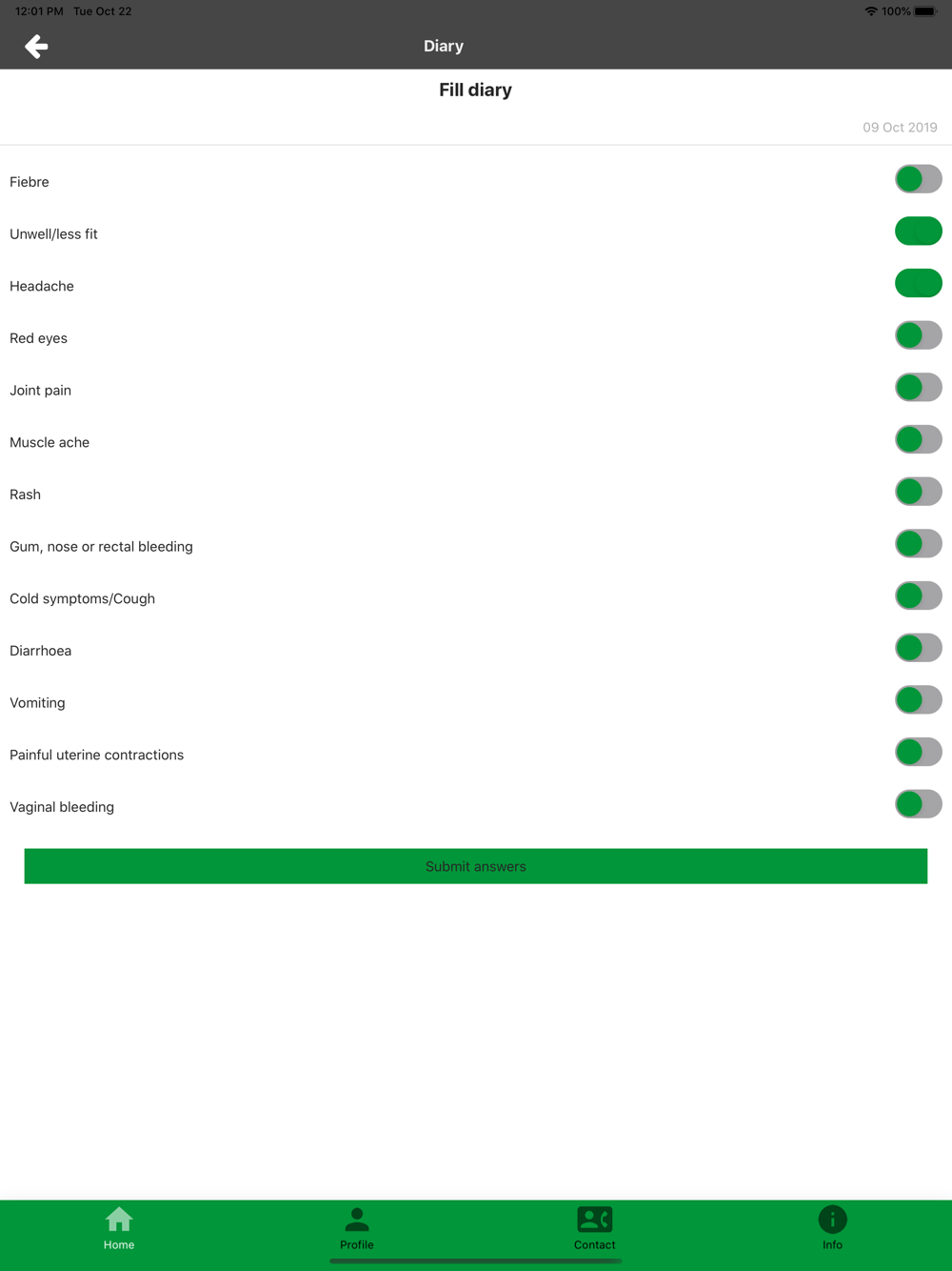 Zikaction App gives you the opportunity to participate in the scientific research for the Zika virus impact on pregnancies. The study aims to contribute with strategies againt infections of the Zika virus to pregnant women and their child. When you have created an account (emailaddres and phonenumber for 2-step verification login), you can login and use the app. The app doesn't collect any personal information. You can fill in a daily diary (list of symptoms) and see information about the virus and see FAQ about it. When you start, you have to give your consent, else you can't fill in the daily diary and the app doesn't collect this data. The app does not collect any other data from your device, other then the you manually enter (symtpoms). Based on the filled in diary it is possible to detect a possible infection and be alerted to see a doctor.