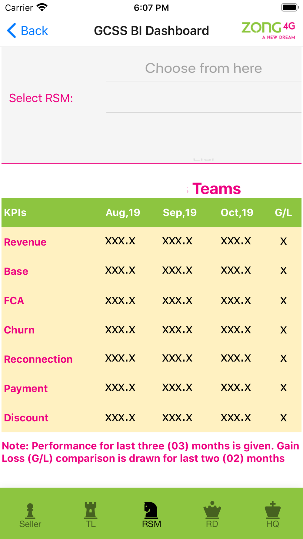 Zong GCSS BI Dashboard App provides interactive and automated performance visibility reports to regions across all the levels of regional teams. Performance reports include summary of various KPIs aggregated in cascaded manner, where each regional resource can view the summary report for themselves as well as for all the teams and resources in their hierarchical reporting.