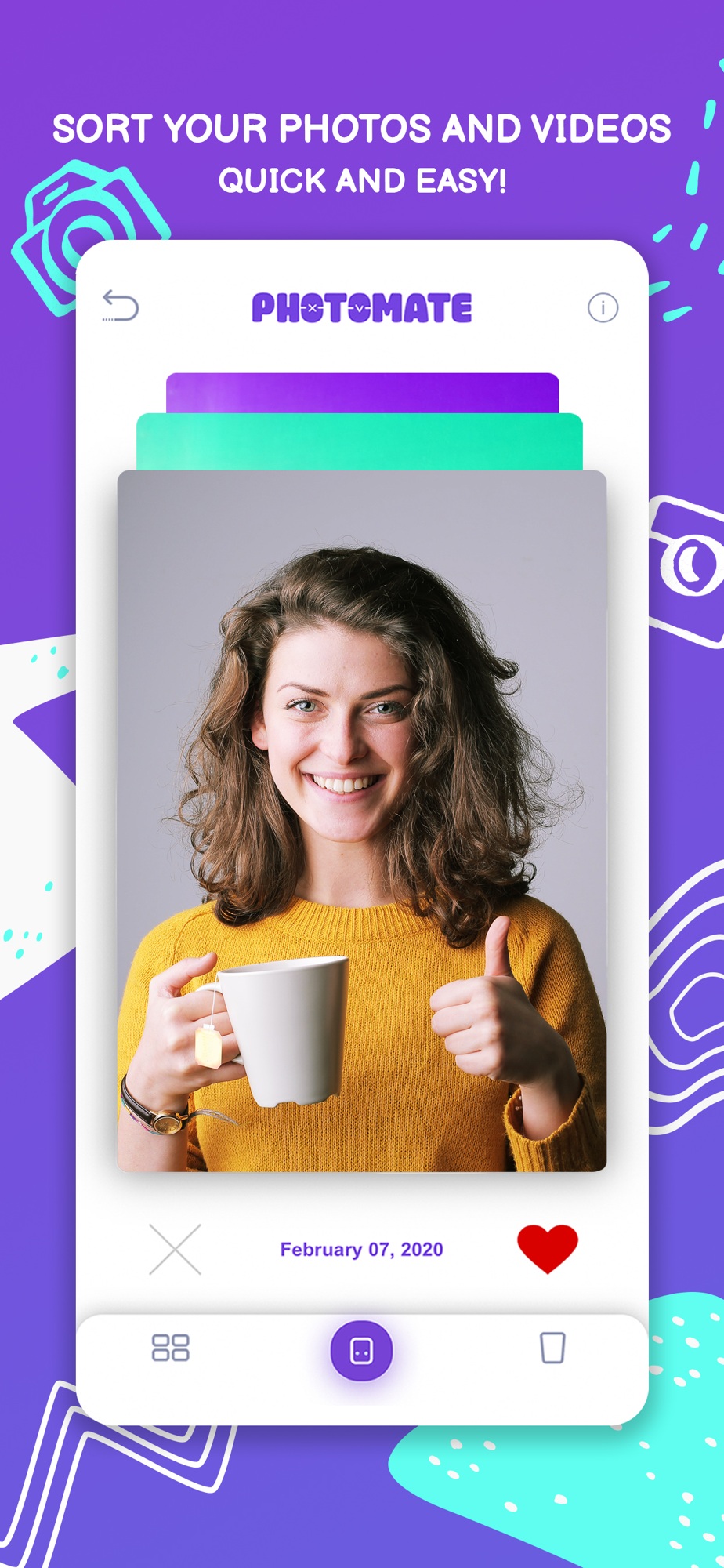 The photos you don’t like are first sent to the trash can. Before deleting, you can view them again, restore a photo, or simply delete everything in one click!