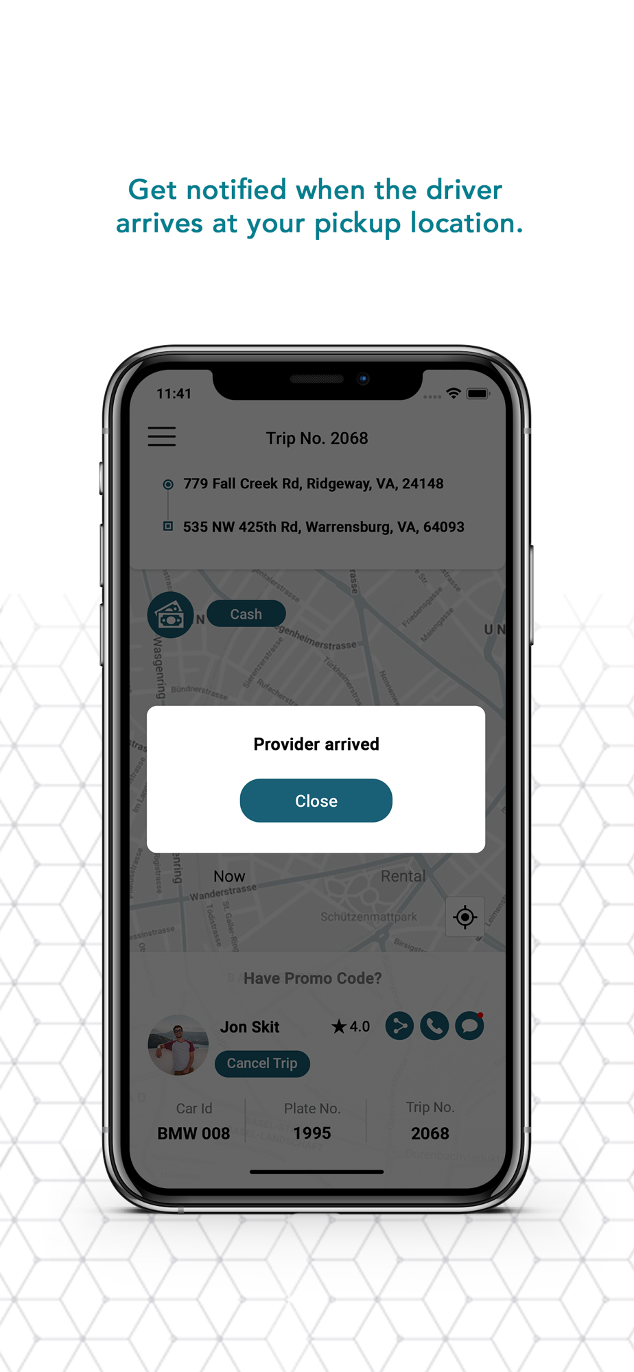 * Driver information, rating and reviews are provided to ensure you are happy with your ride