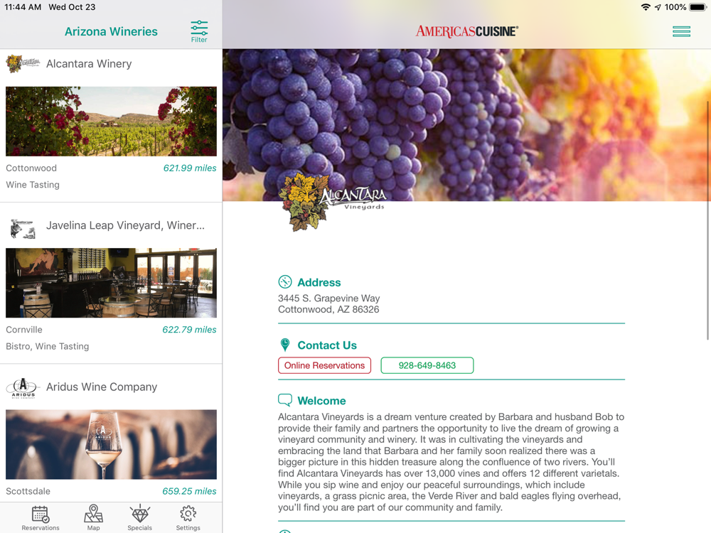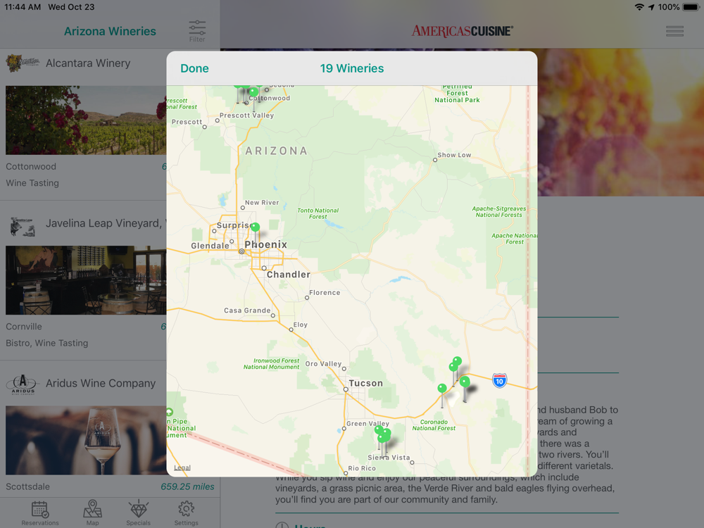 AmericasCuisine, The Culinary Encyclopedia of America, now offer an App packed full of Winery listings for Arizona.