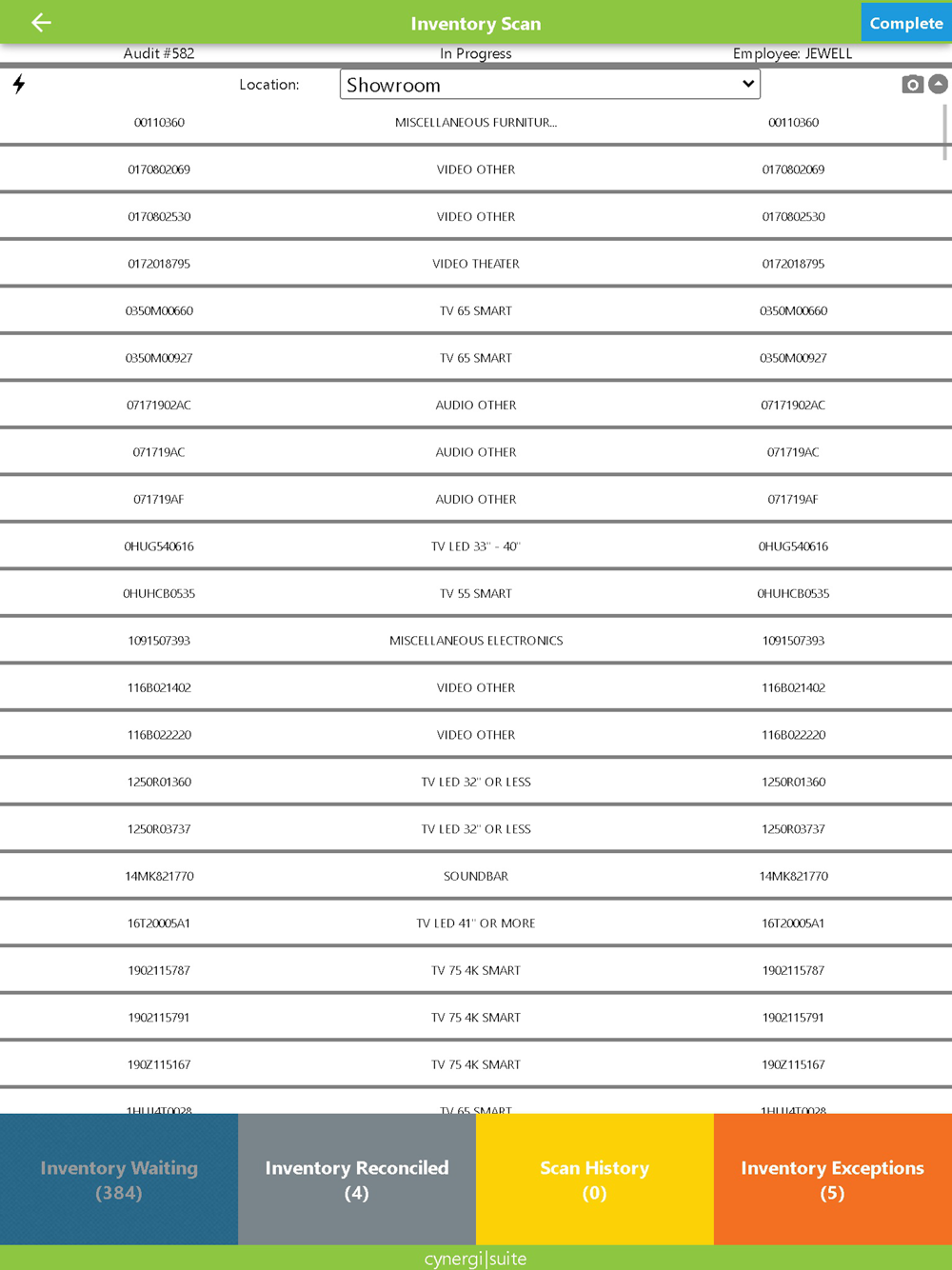 Put your entire inventory in your hands. Say goodbye to external barcode scanners. View your complete idle inventory, in real-time, while you scan items. With the cynergi|suite Inventory Scanning app, you can easily audit your idle store inventory using the camera on any supported mobile device.
