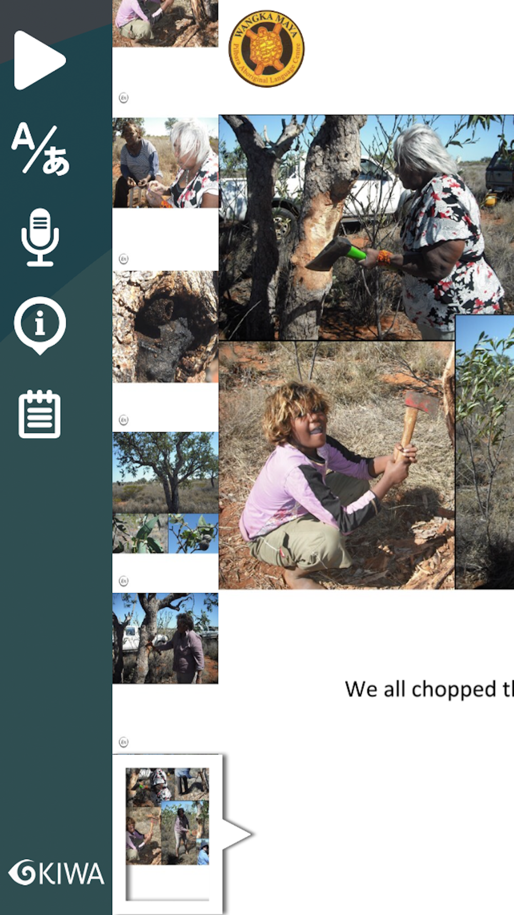 Wangka Maya Pilbara Aboriginal Language Centre aims to be recognised as a leading Aboriginal language and resource centre in Australia. By working with the old people of the PiIbara, we will use our expertise, knowledge and sensitivity to record and foster Aboriginal languages, culture and history. Thus the young people remain strong in retaining their Aboriginal language, culture and history ensuring cultural continuity.