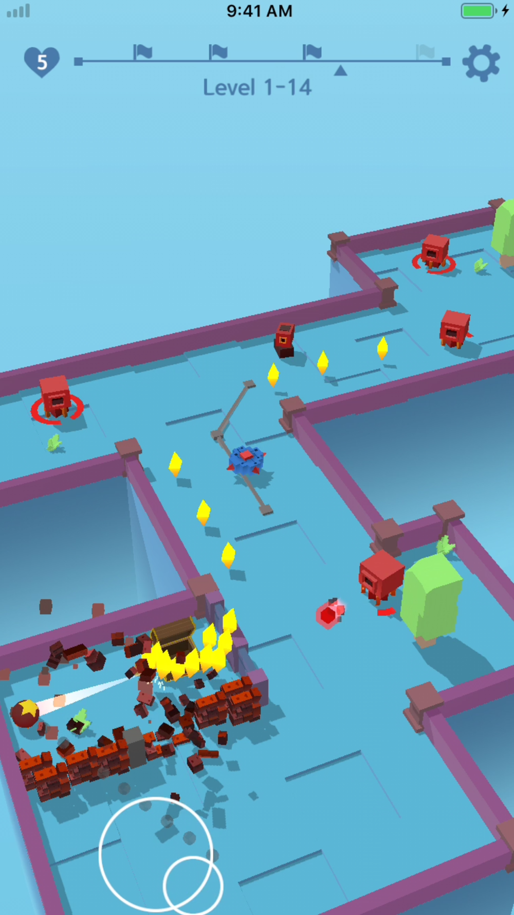 Roll the ball and Defeat all turrets that is shooting or watching you.
